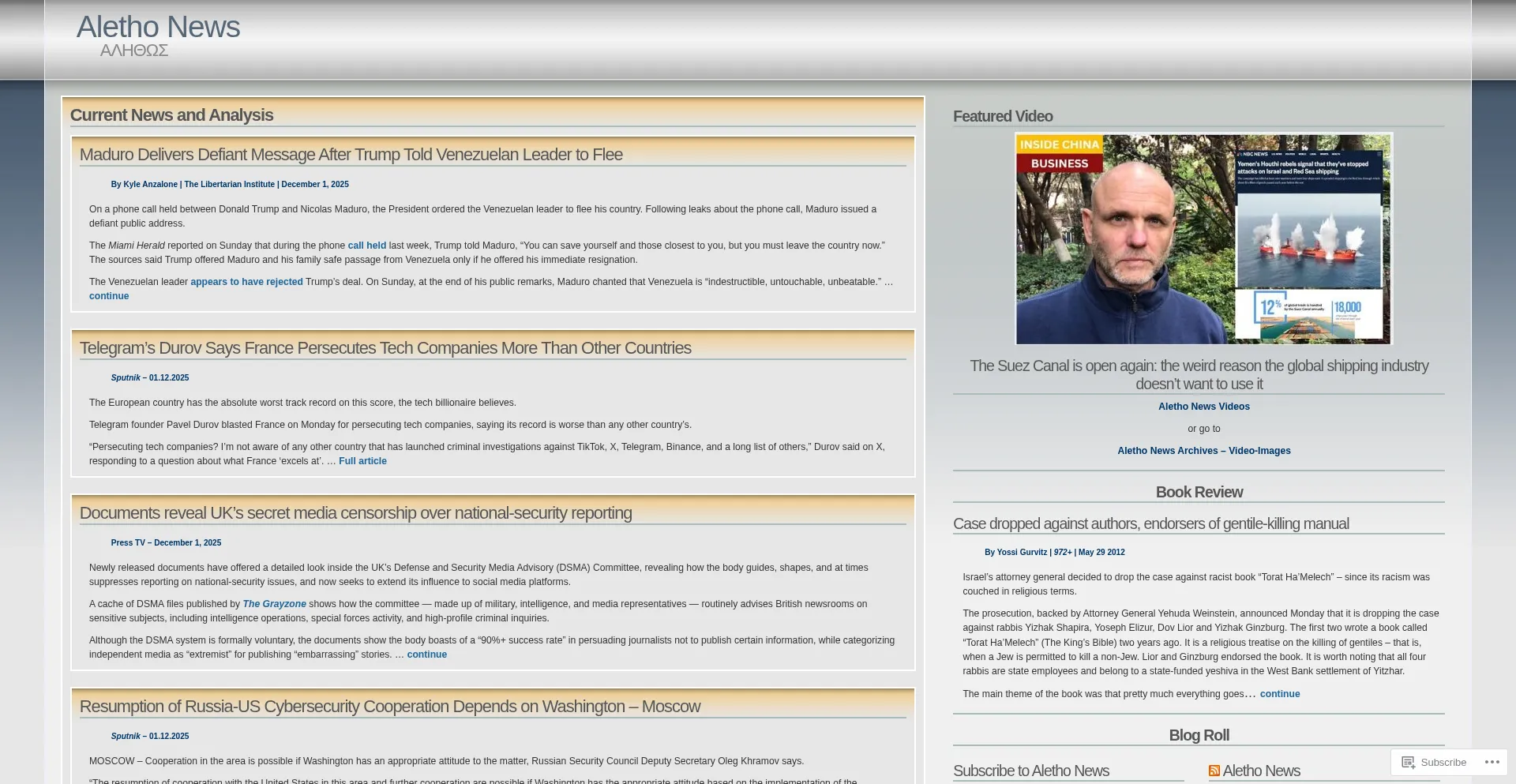 Maduro Delivers Defiant Message After Trump Told Venezuelan Leader to Flee By Kyle Anzalone | The Libertarian Institute | December 1, 2025 On a phone call held between Donald T...