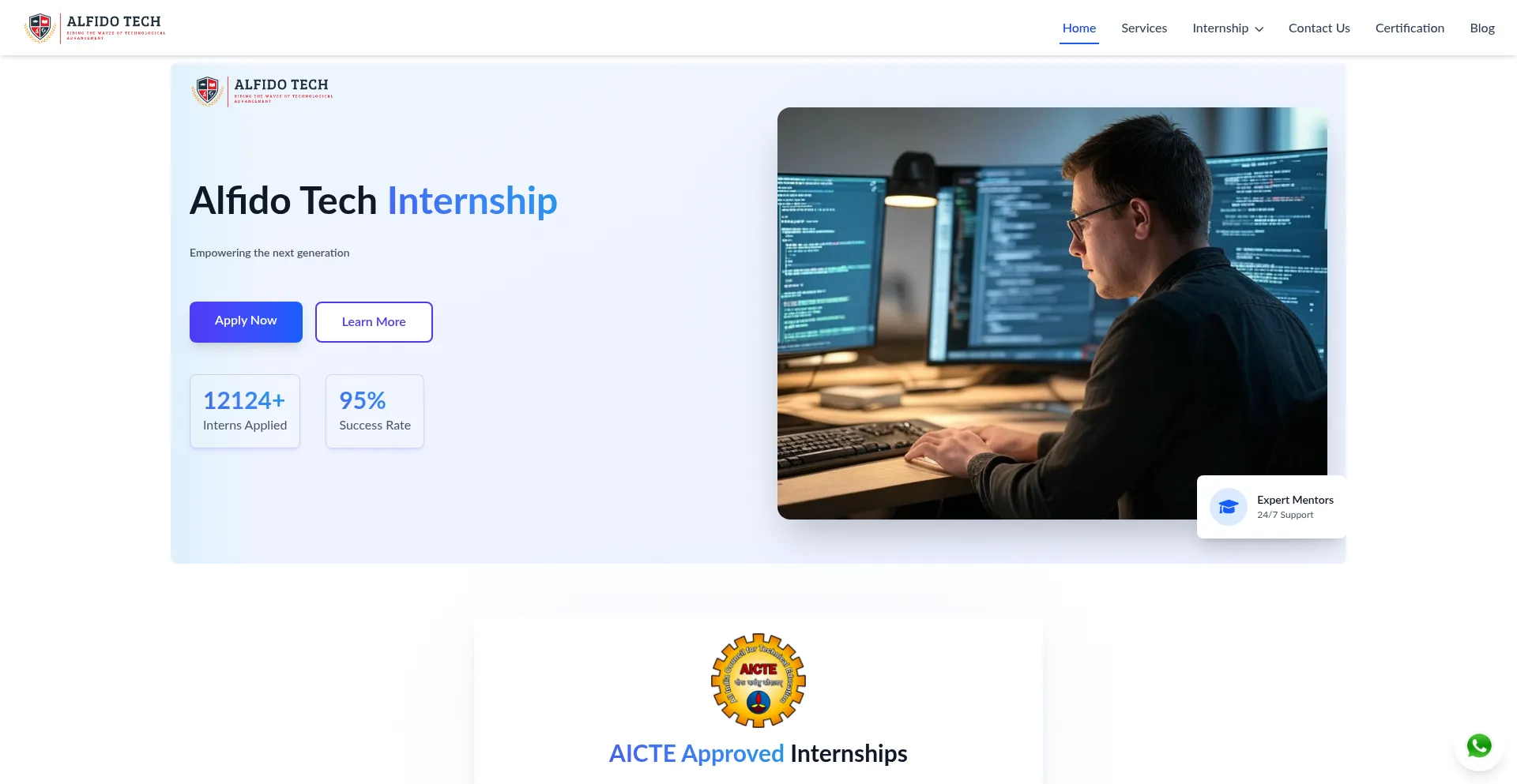 Apply now for Alfido Tech's AICTE-approved Remote IT Internship 2025 in Frontend, Python, Java, Data Science, and Android. Boost your career today.