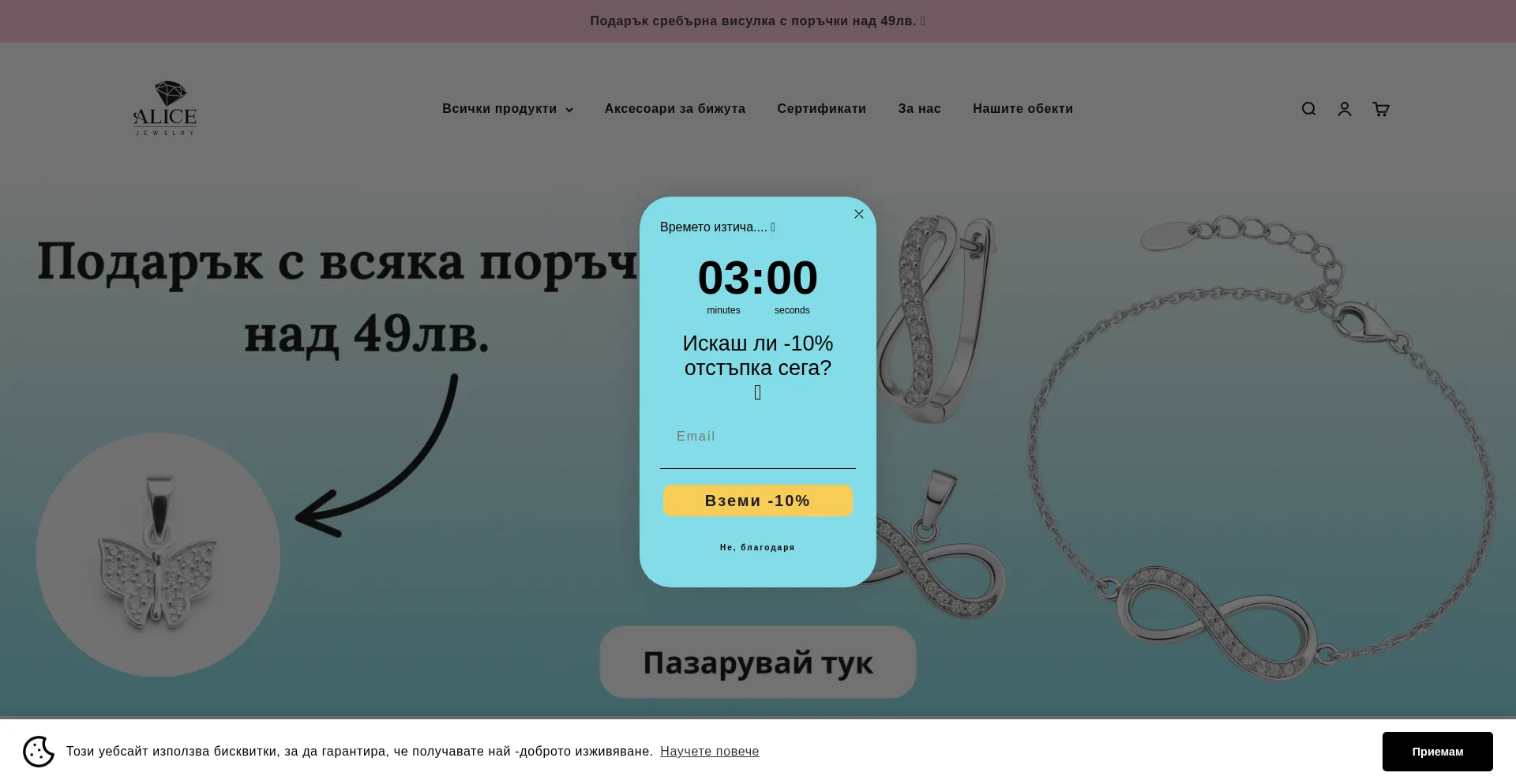 Открийте луксозни сребърни бижута, които разказват история. В Alice Jewelry предлагаме елегантни пръс�...