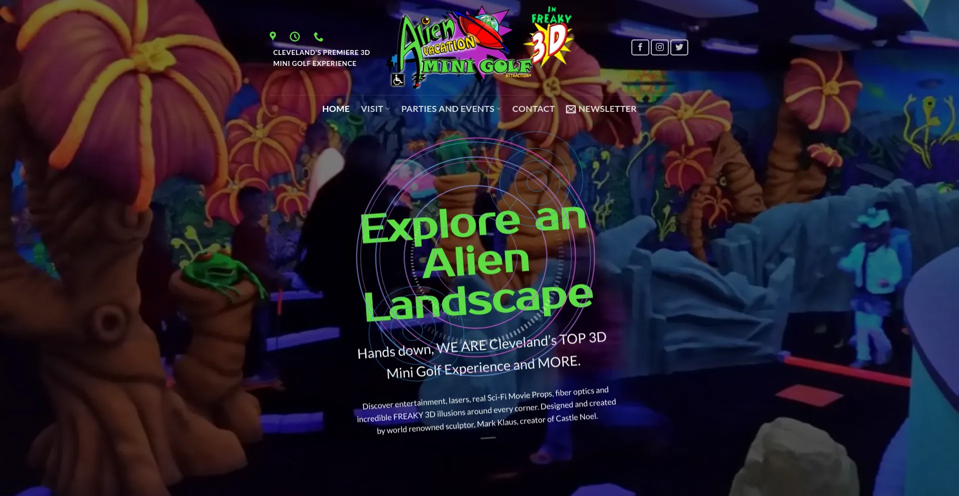 网站上存在社交媒体链接表明 alienvacationminigolf.com 在社交媒体上维护官方账户,这是可信度和参与度的积极信号。