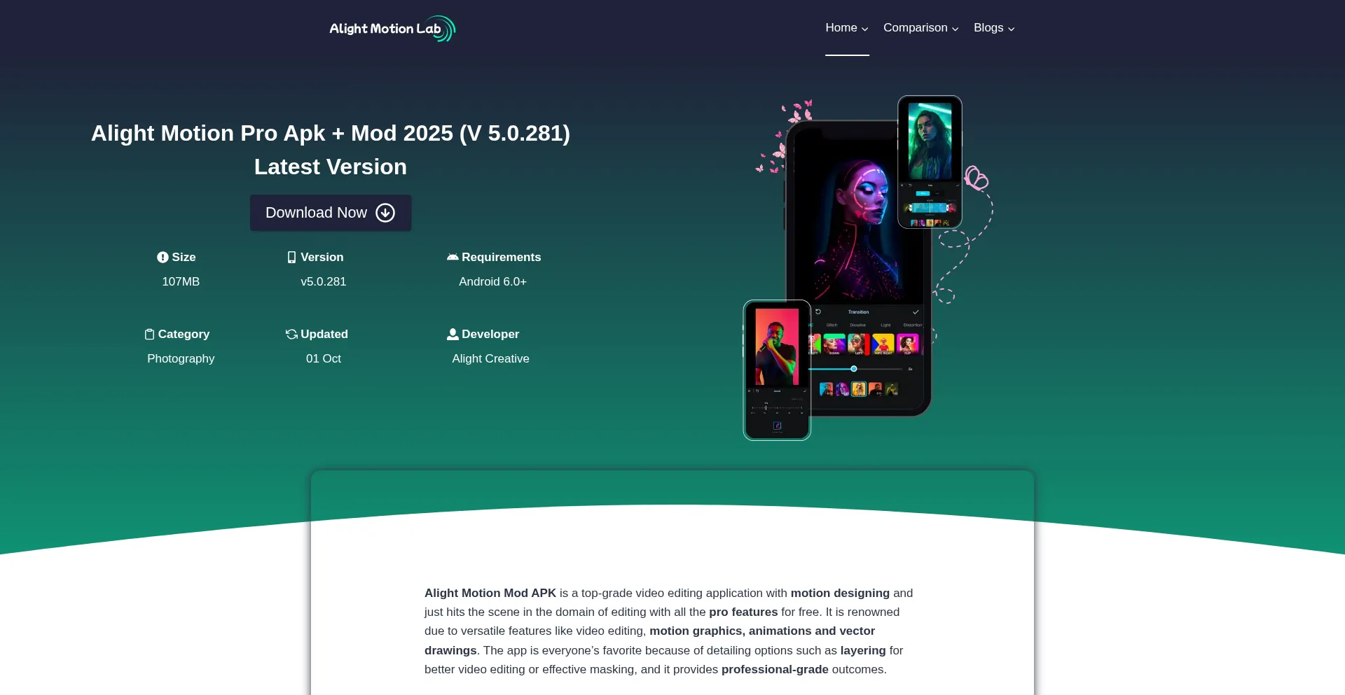 网站上存在社交媒体链接表明 alightmotionlab.pro 在社交媒体上维护官方账户,这是可信度和参与度的积极信号。