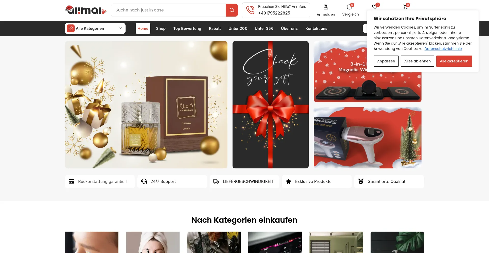 alimalshop.com 拥有可用的 iOS 移动应用程序,表明为 Apple 设备用户提供跨平台可访问性。