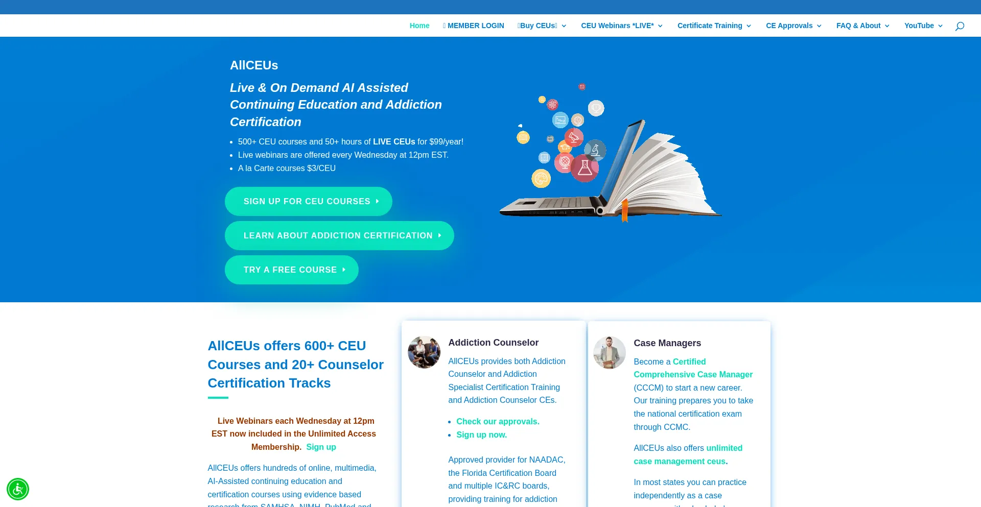 Live & online counseling continuing education CE / CEUs for LMHC and LPC, LCSW, LADC, CADC, LMFT, CRC plus online addiction counselor and peer specialist certification training...