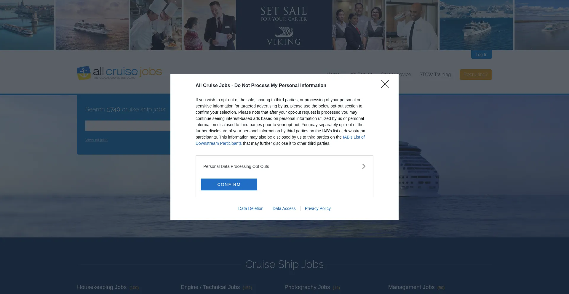 该网站实现数据收集表单,请求个人信息,包括姓名、电子邮件地址、电话号码或其他敏感详细信息。用户应验证 allcruisejobs.com 的合法性并在提交个人数据前查看隐私政策。