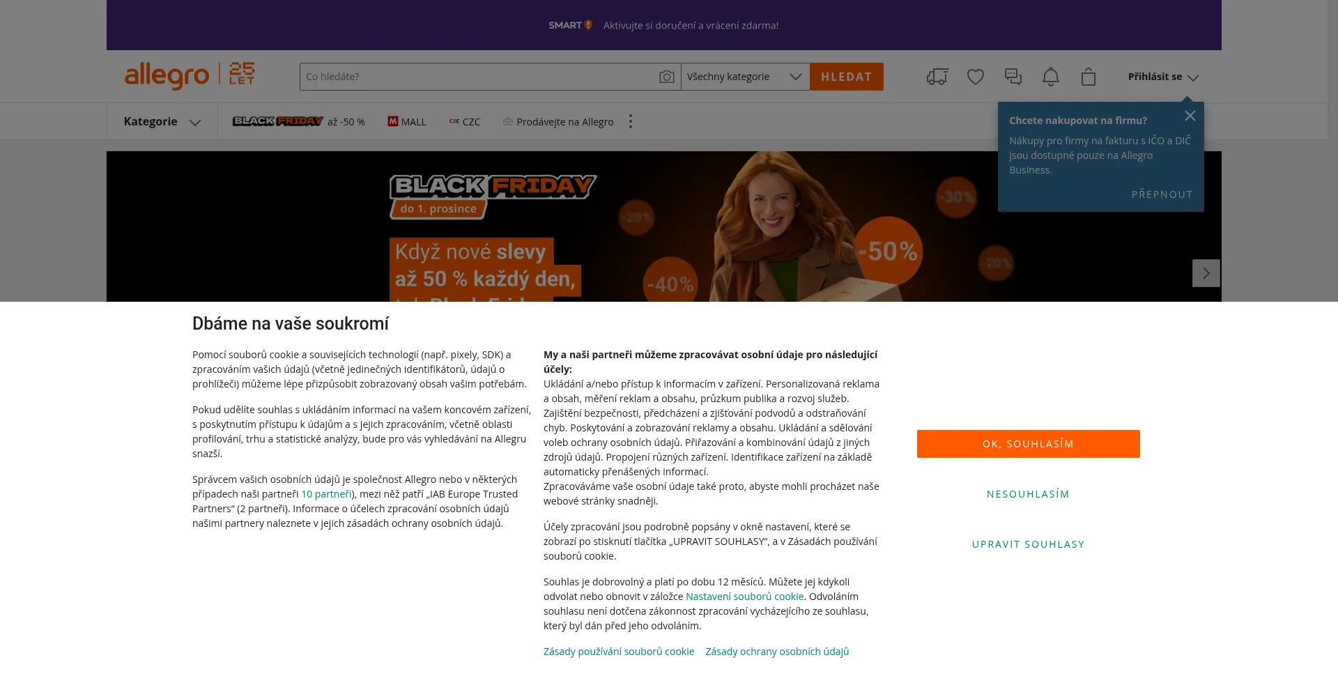 该网站实现数据收集表单,请求个人信息,包括姓名、电子邮件地址、电话号码或其他敏感详细信息。用户应验证 allegro.cz 的合法性并在提交个人数据前查看隐私政策。