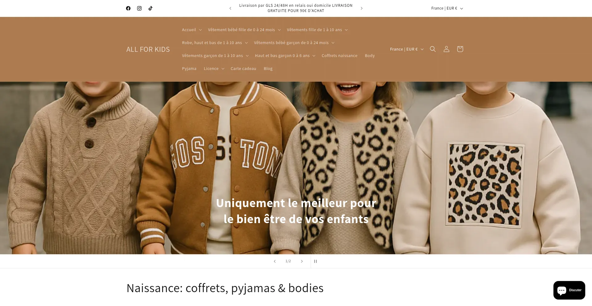 网站上存在社交媒体链接表明 allforkids.fr 在社交媒体上维护官方账户,这是可信度和参与度的积极信号。