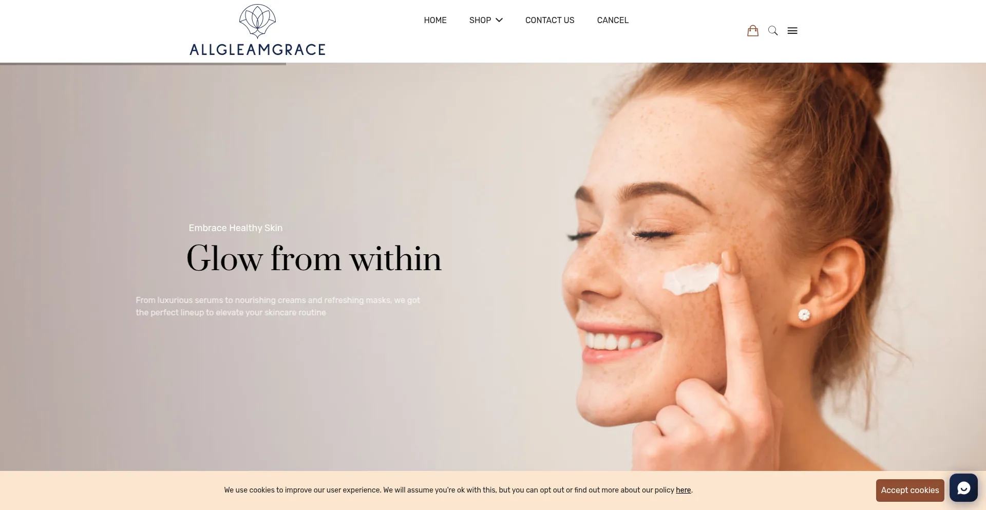 该网站实现符合GDPR或CCPA等隐私法规的cookie同意机制。这表明 allgleamgrace.com 遵守数据保护标准并为用户提供对个人数据收集实践的控制。