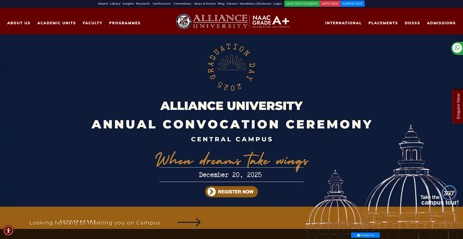 该网站实现数据收集表单,请求个人信息,包括姓名、电子邮件地址、电话号码或其他敏感详细信息。用户应验证 alliance.edu.in 的合法性并在提交个人数据前查看隐私政策。