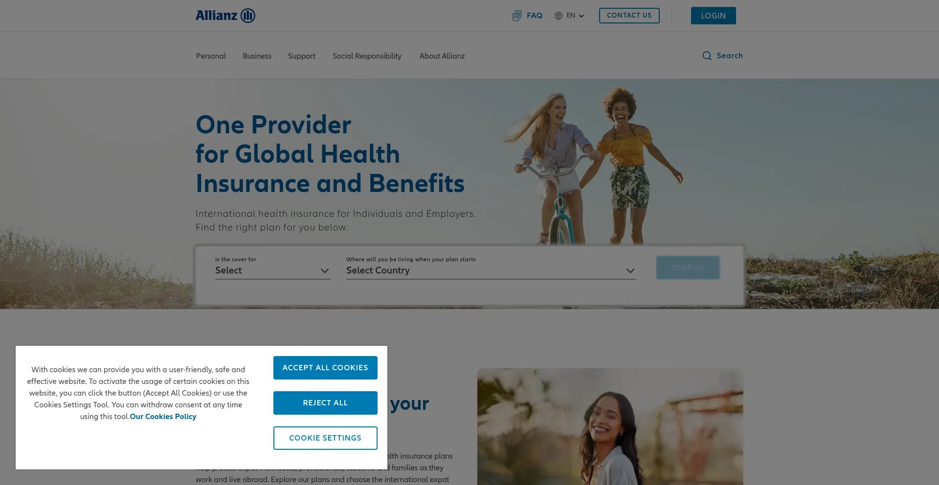 该网站实现符合GDPR或CCPA等隐私法规的cookie同意机制。这表明 allianzworldwidecare.com 遵守数据保护标准并为用户提供对个人数据收集实践的控制。
