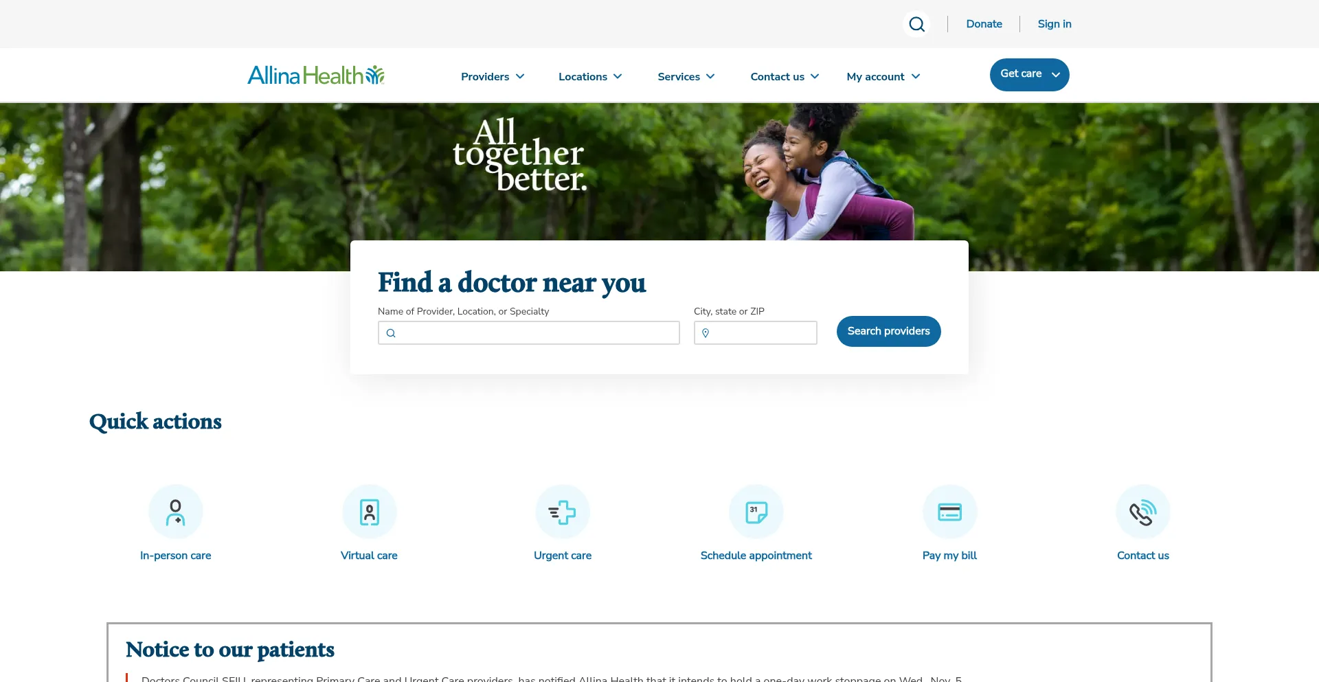 Allina Health cares for you from beginning to end of life by understanding your health needs & the whole context of your life, so you can live better than you thought possible.