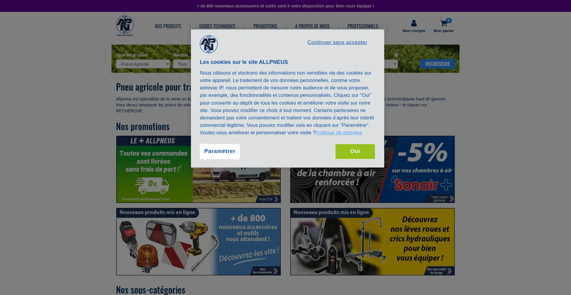 该网站实现符合GDPR或CCPA等隐私法规的cookie同意机制。这表明 allpneus.com 遵守数据保护标准并为用户提供对个人数据收集实践的控制。