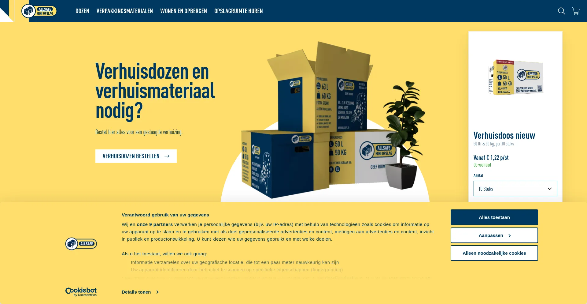 Verhuisdozen en inpakmateriaal koop je bij ALLSAFE. Voor 22.00 besteld = morgen in huis of gratis en direct afhalen bij ALLSAFE.