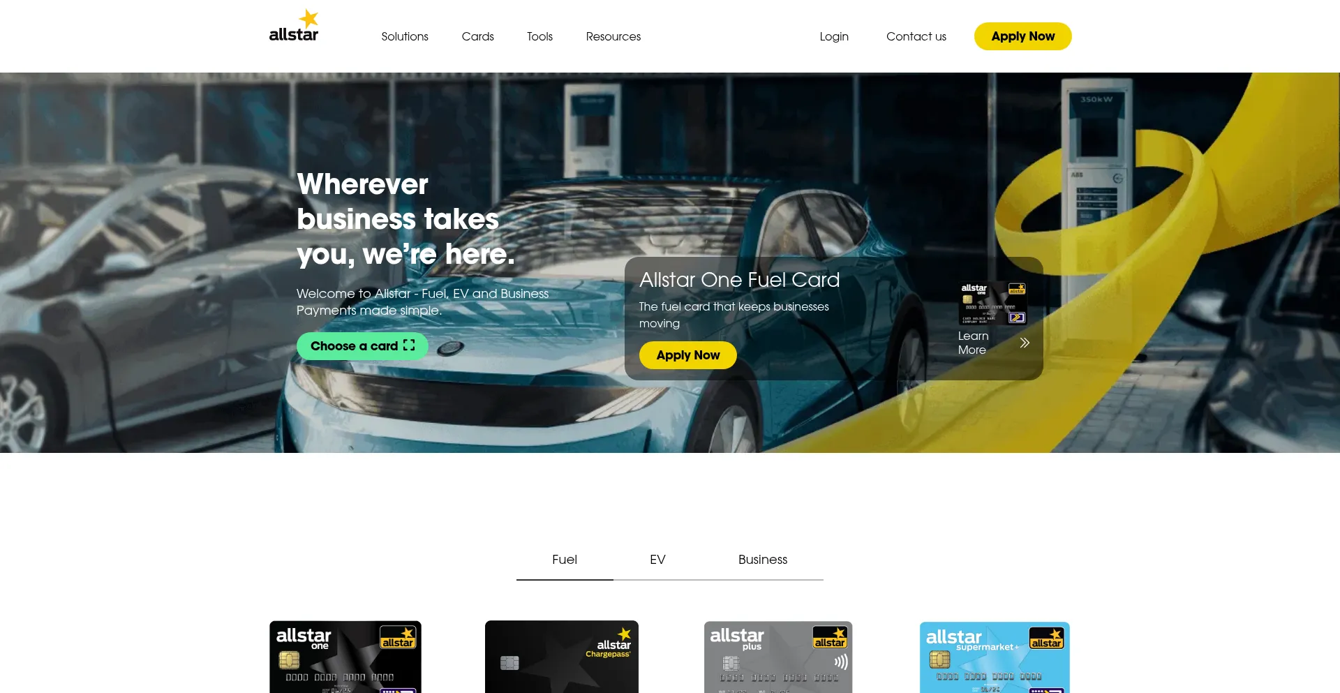 Allstar is the leading provider of a wide range of bespoke fuel card, business credit cards and electric vehicle fleet solutions. Find out more and apply today.