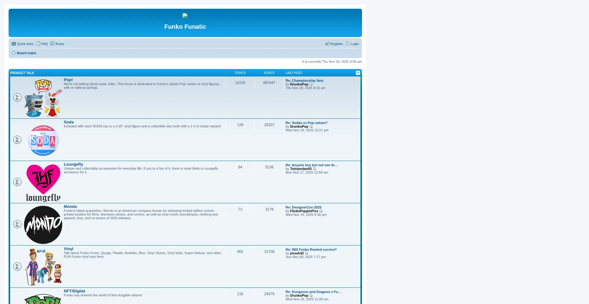 Funko Funatic - Index page