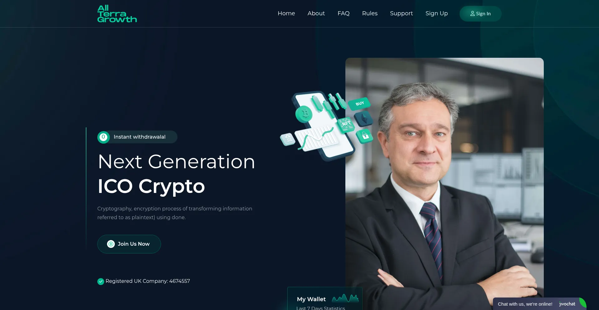 该网站实现数据收集表单,请求个人信息,包括姓名、电子邮件地址、电话号码或其他敏感详细信息。用户应验证 allterragrowth.biz 的合法性并在提交个人数据前查看隐私政策。