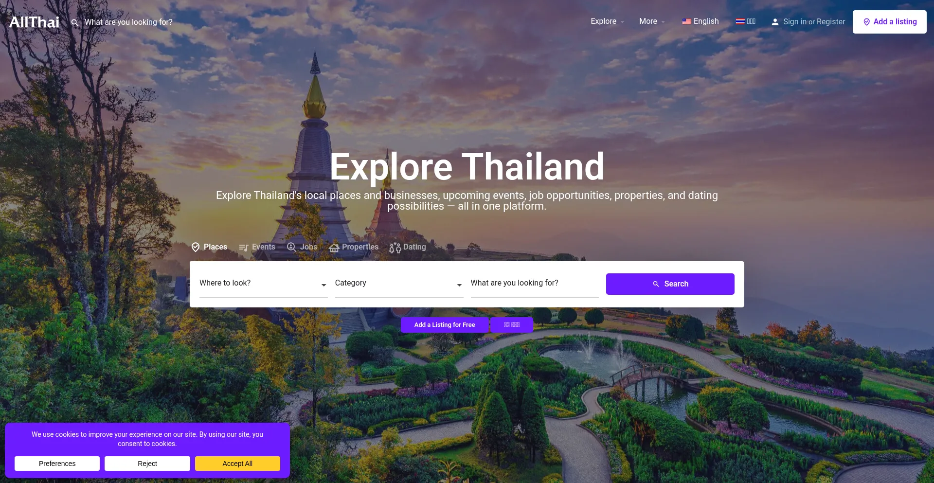 Explore Thailand's local places and businesses, upcoming events, job opportunities, and properties — all in one platform.
