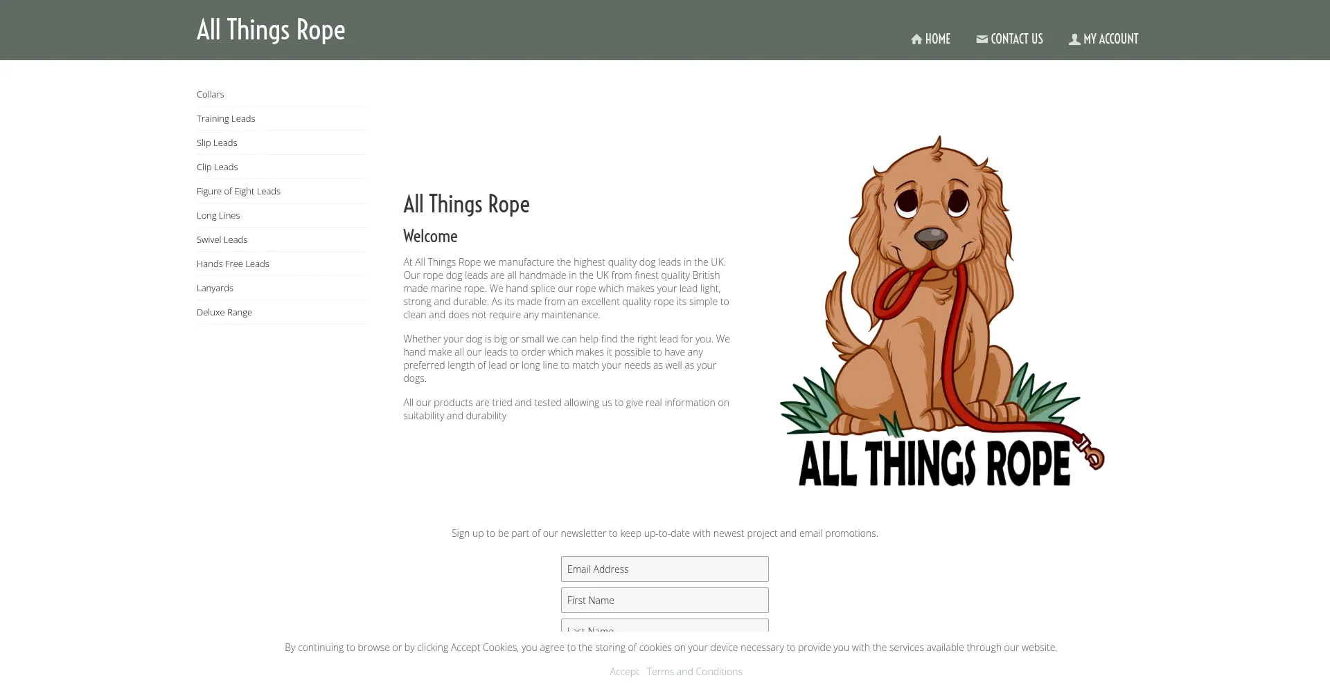 该网站实现数据收集表单,请求个人信息,包括姓名、电子邮件地址、电话号码或其他敏感详细信息。用户应验证 allthingsrope.co.uk 的合法性并在提交个人数据前查看隐私政策。