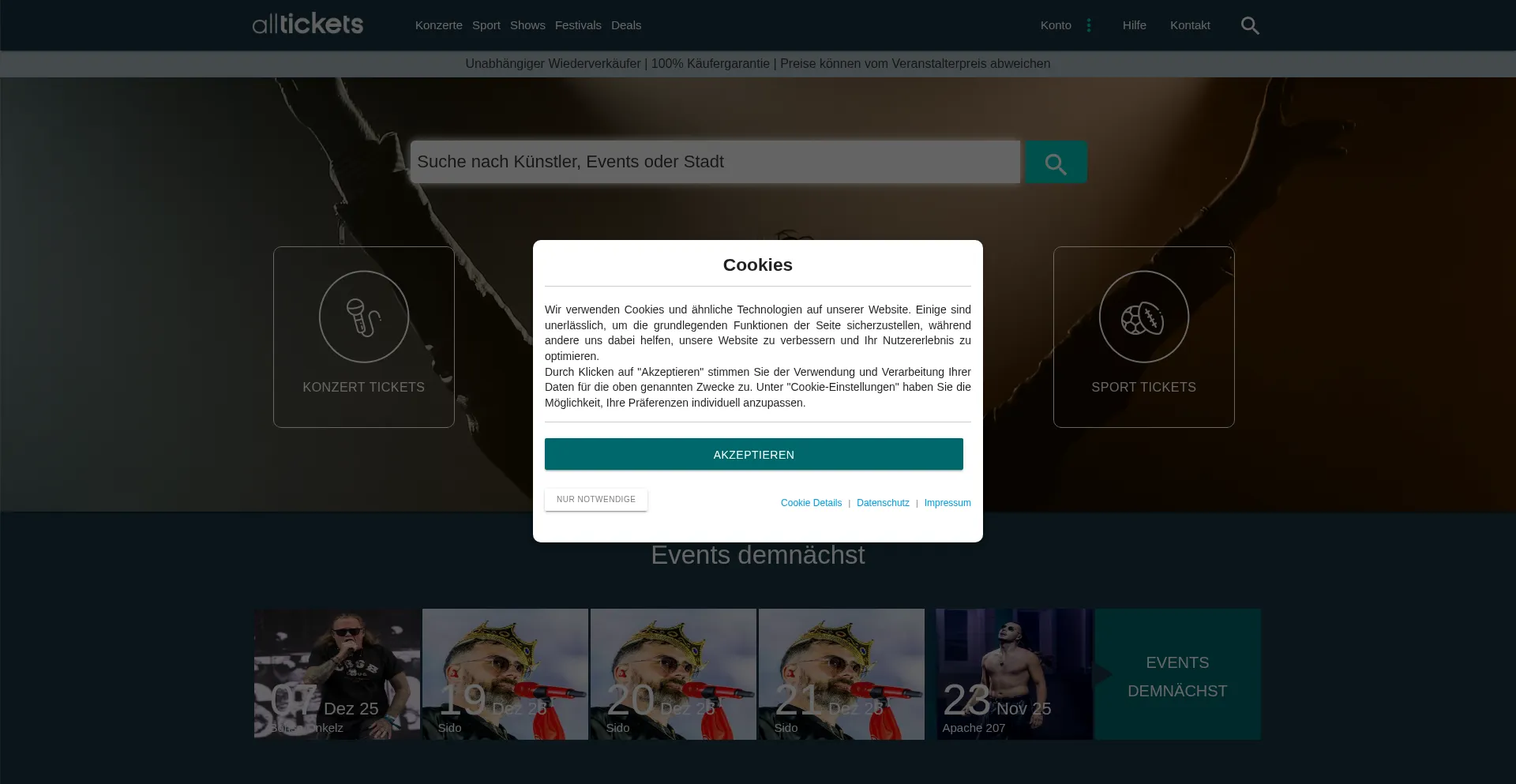 Tickets für Konzerte, Shows, Festival, Sport Events und mehr ... | alltickets