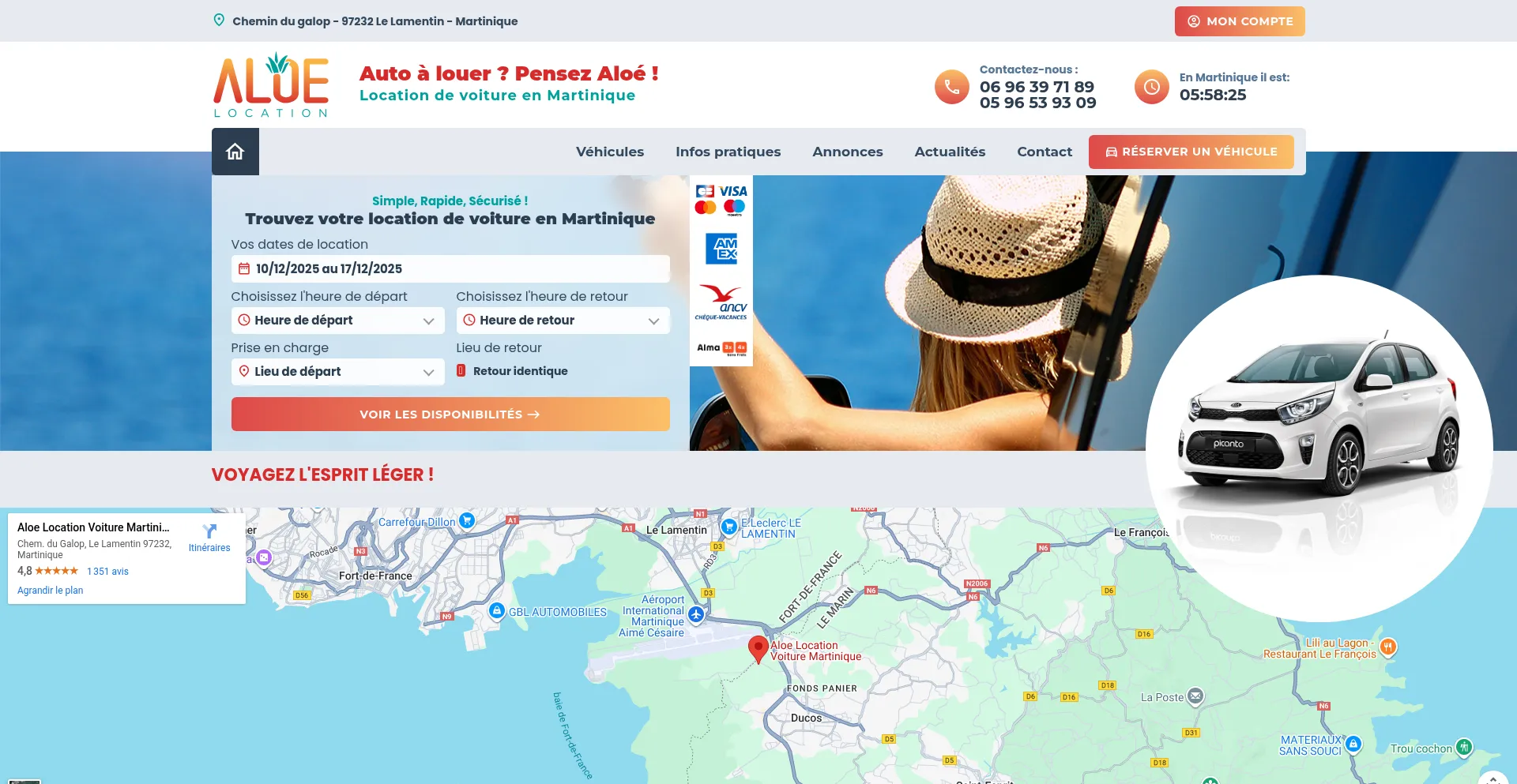 Votre location de voiture à la Martinique - Centre-Ville et aéroport - Km illimité - 3 conducteurs inclus- Véhicules très récents au meilleur prix. Avis clients 4.6 sur 5
