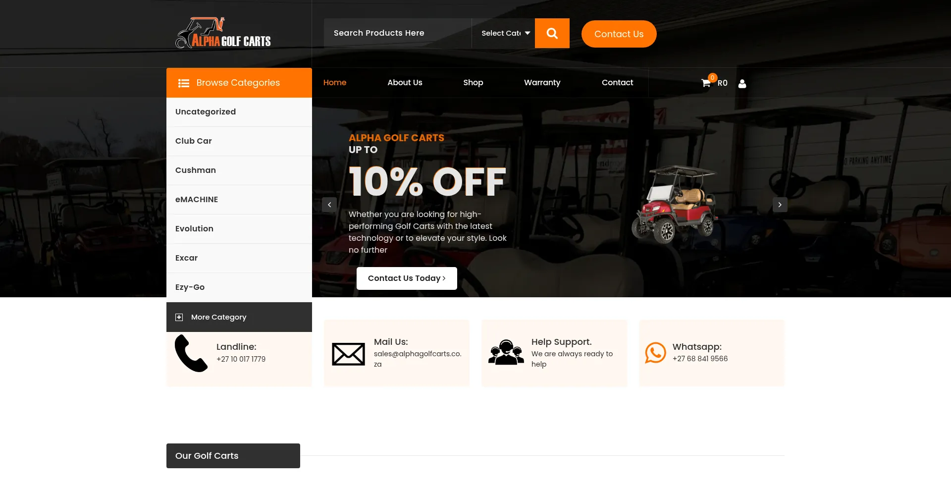 分析表明 alphagolfcarts.co.za 作为电子商务平台运营,促进商品或服务的在线交易。该网站实现了购物车功能、支付处理系统和产品目录功能,这些是商业零售运营的典型特征。