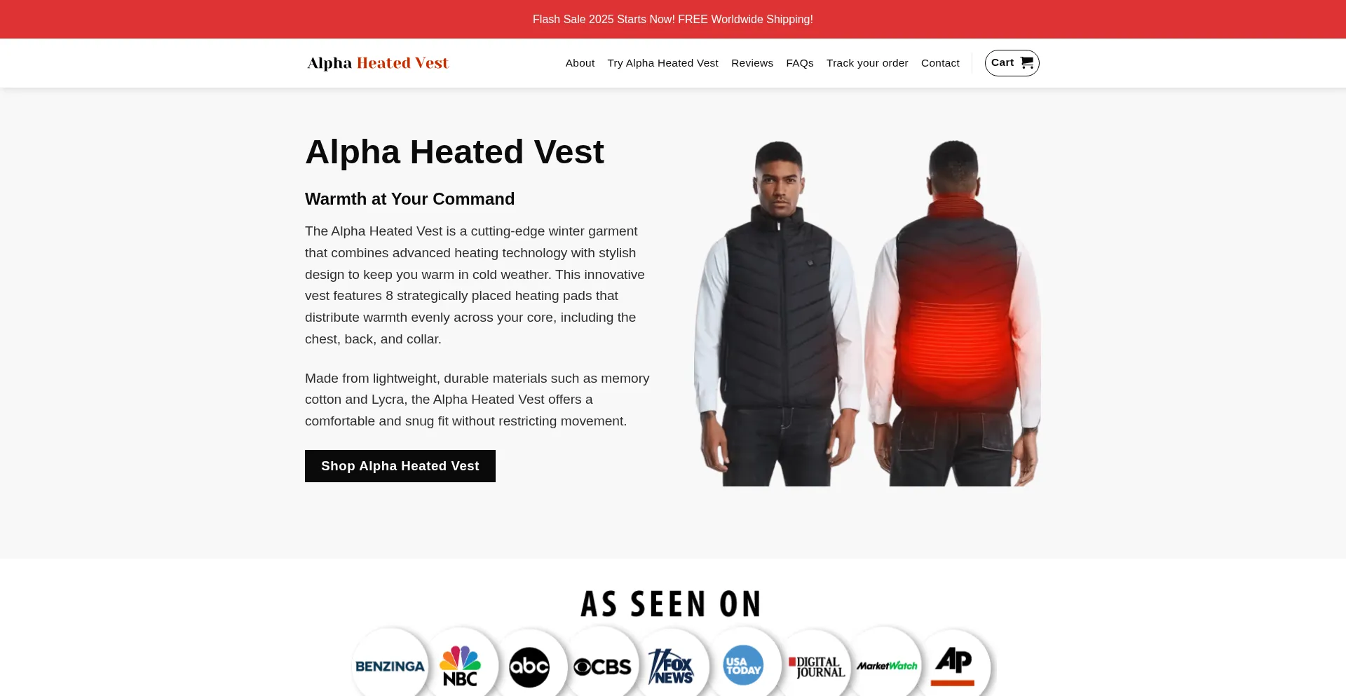 分析表明 alphaheatedvest.com 作为电子商务平台运营,促进商品或服务的在线交易。该网站实现了购物车功能、支付处理系统和产品目录功能,这些是商业零售运营的典型特征。
