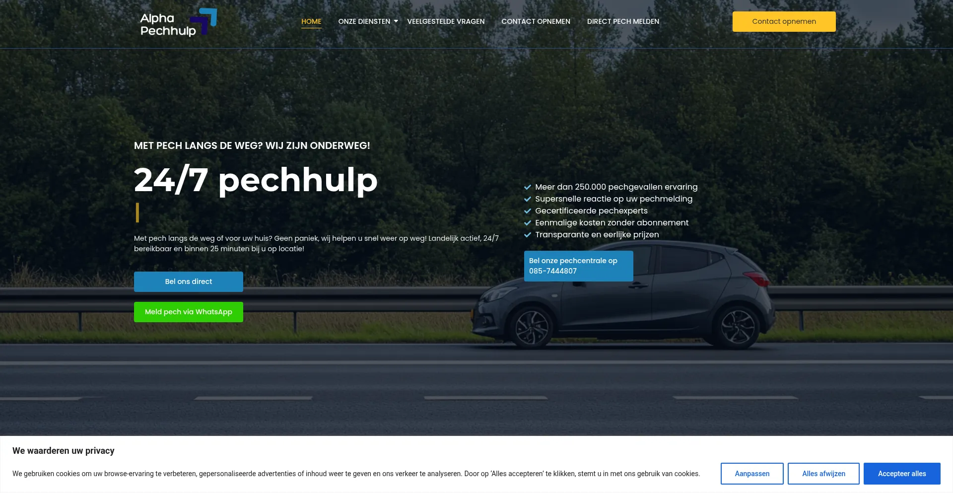 24/7 Pechhulp op locatie | Bel Alpha Pechhulp - Binnen 25 min bij u