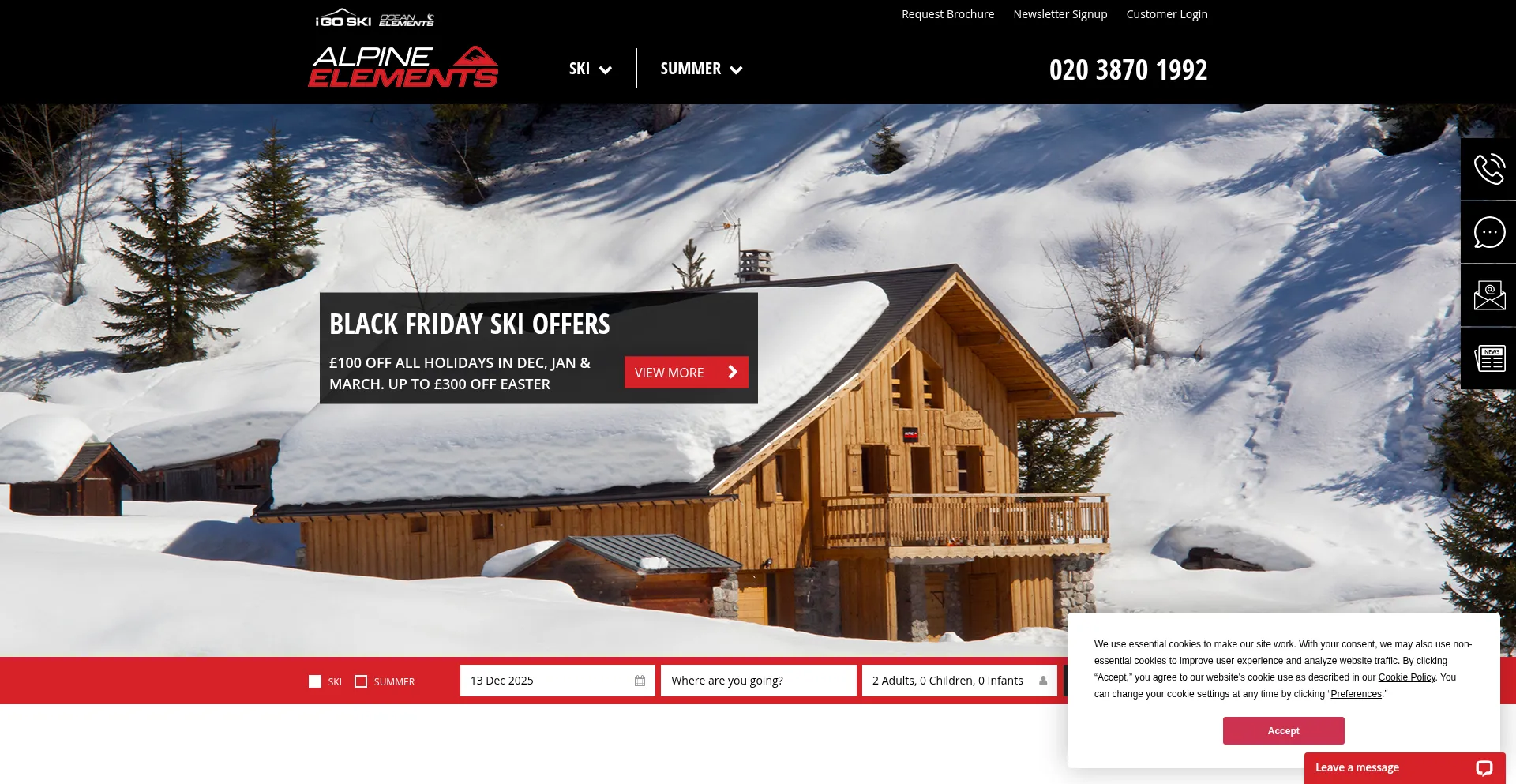 该网站实现数据收集表单,请求个人信息,包括姓名、电子邮件地址、电话号码或其他敏感详细信息。用户应验证 alpineelements.co.uk 的合法性并在提交个人数据前查看隐私政策。