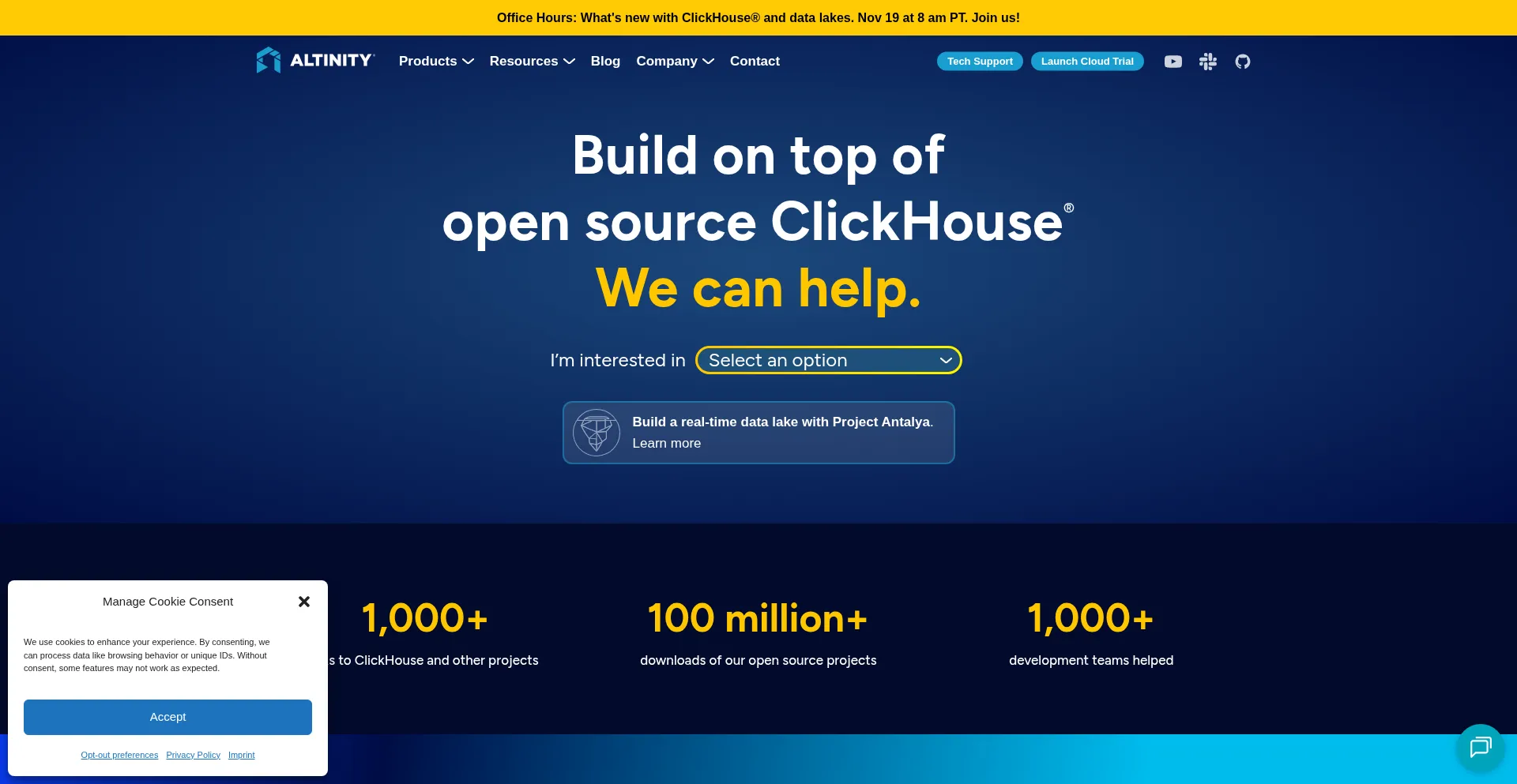 该网站实现符合GDPR或CCPA等隐私法规的cookie同意机制。这表明 altinity.com 遵守数据保护标准并为用户提供对个人数据收集实践的控制。