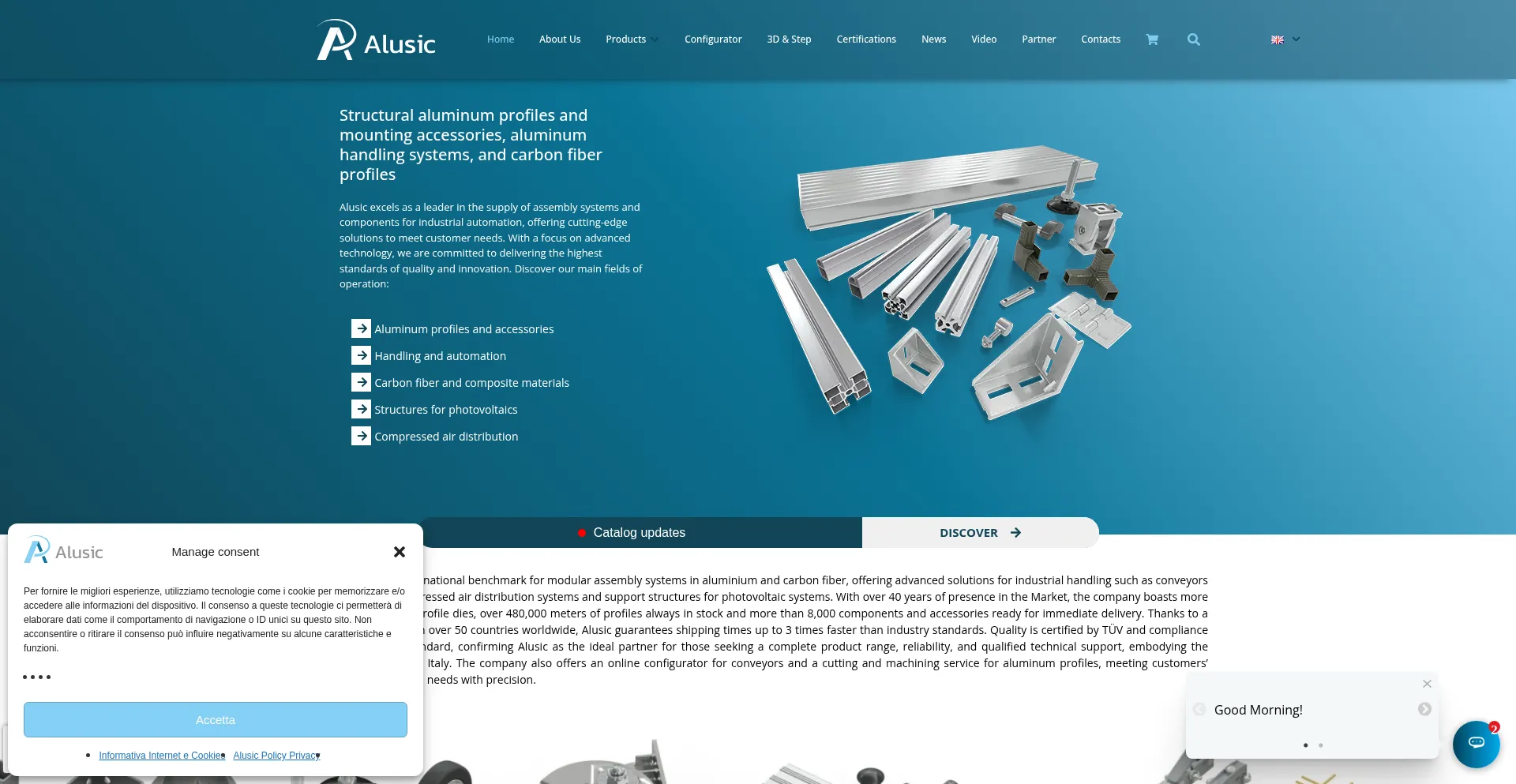 Structural aluminum profiles and mounting accessories, aluminum handling systems, and carbon fiber profiles