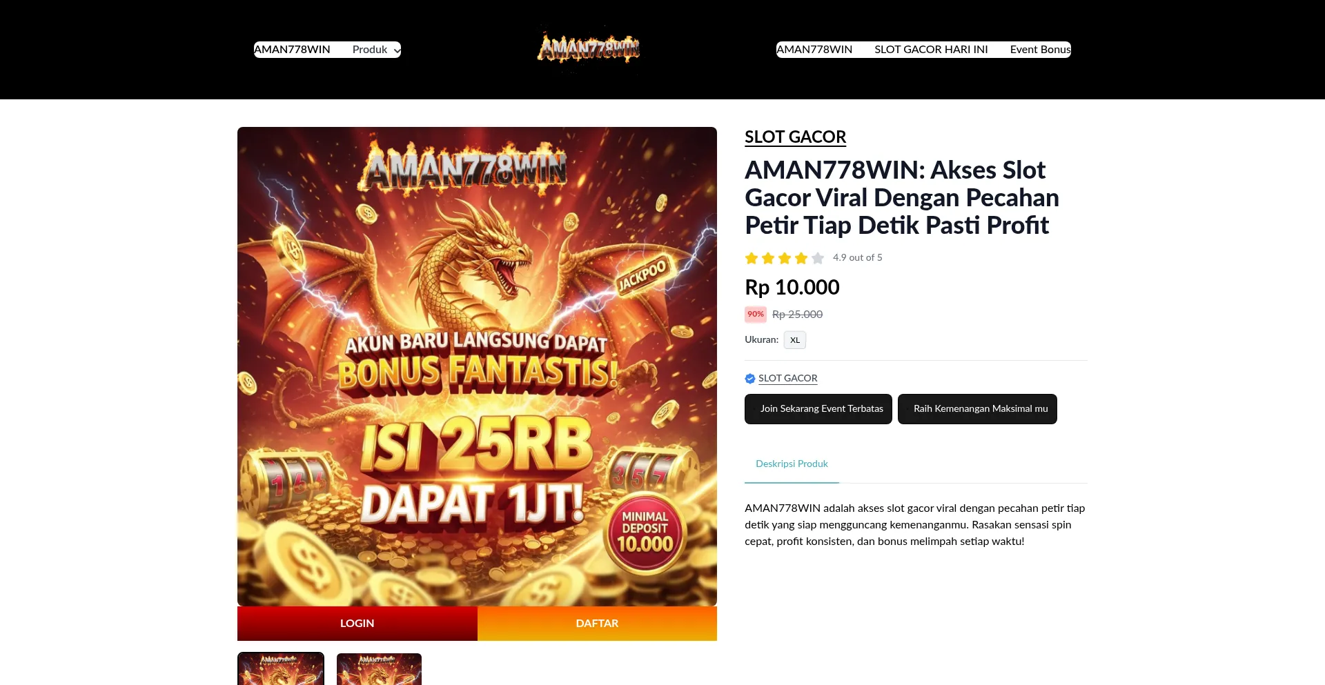 AMAN778WIN adalah akses slot gacor viral dengan pecahan petir tiap detik yang siap mengguncang kemenanganmu. Rasakan sensasi spin cepat, profit konsisten, dan bonus melimpah set...