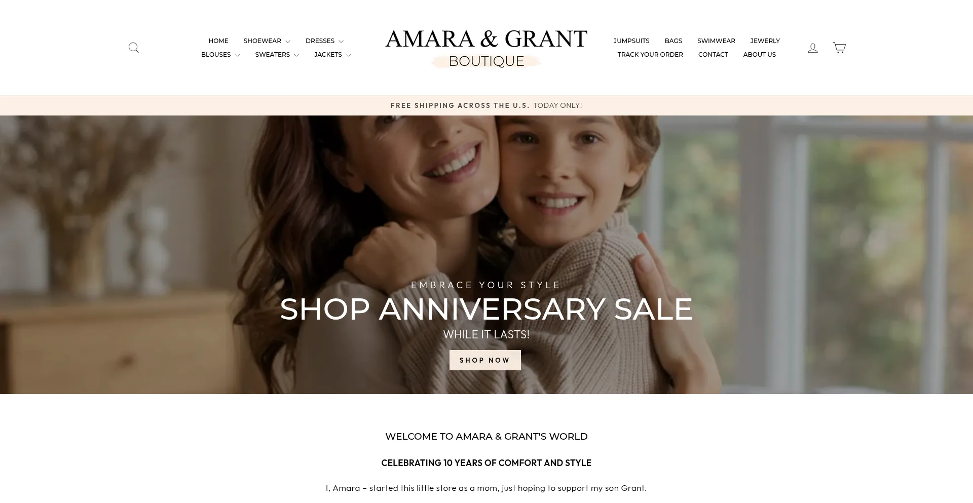 Amara & Grant Boutique offers timeless men’s and women’s fashion – from everyday essentials to elegant statement pieces. Shop online with fast US shipping.