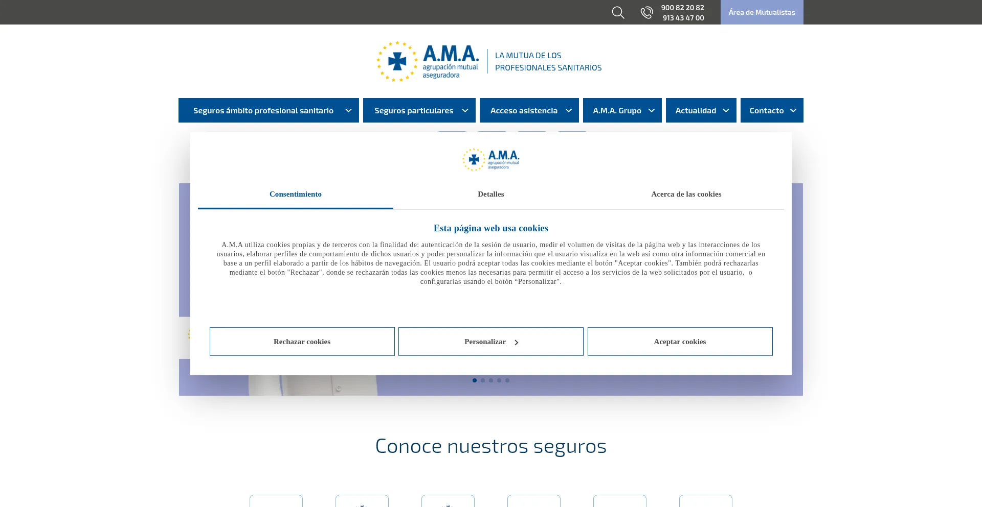 该网站实现符合GDPR或CCPA等隐私法规的cookie同意机制。这表明 amaseguros.com 遵守数据保护标准并为用户提供对个人数据收集实践的控制。