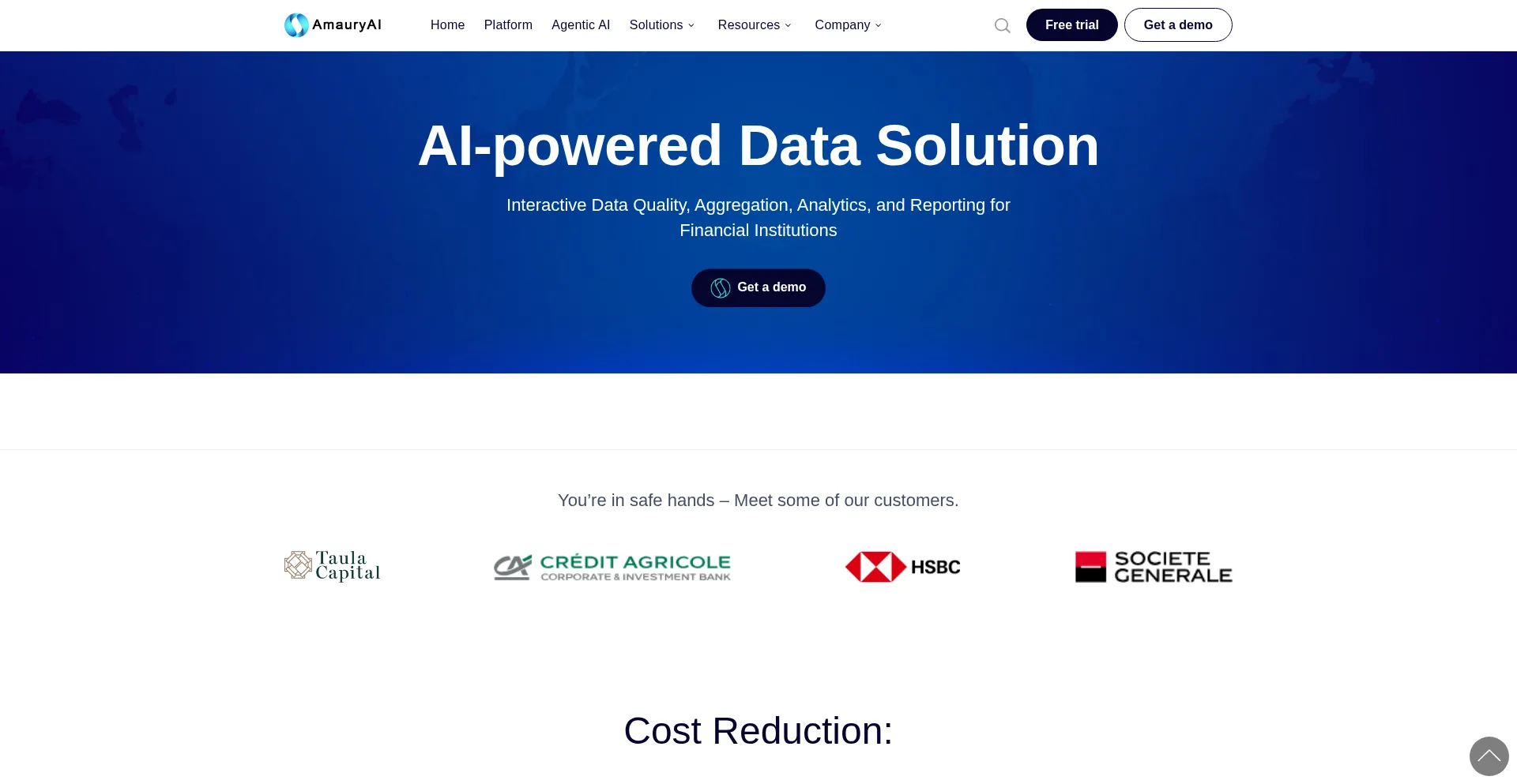 AmauryAI is an AI-powered data solution for financial institutions, providing interactive data quality