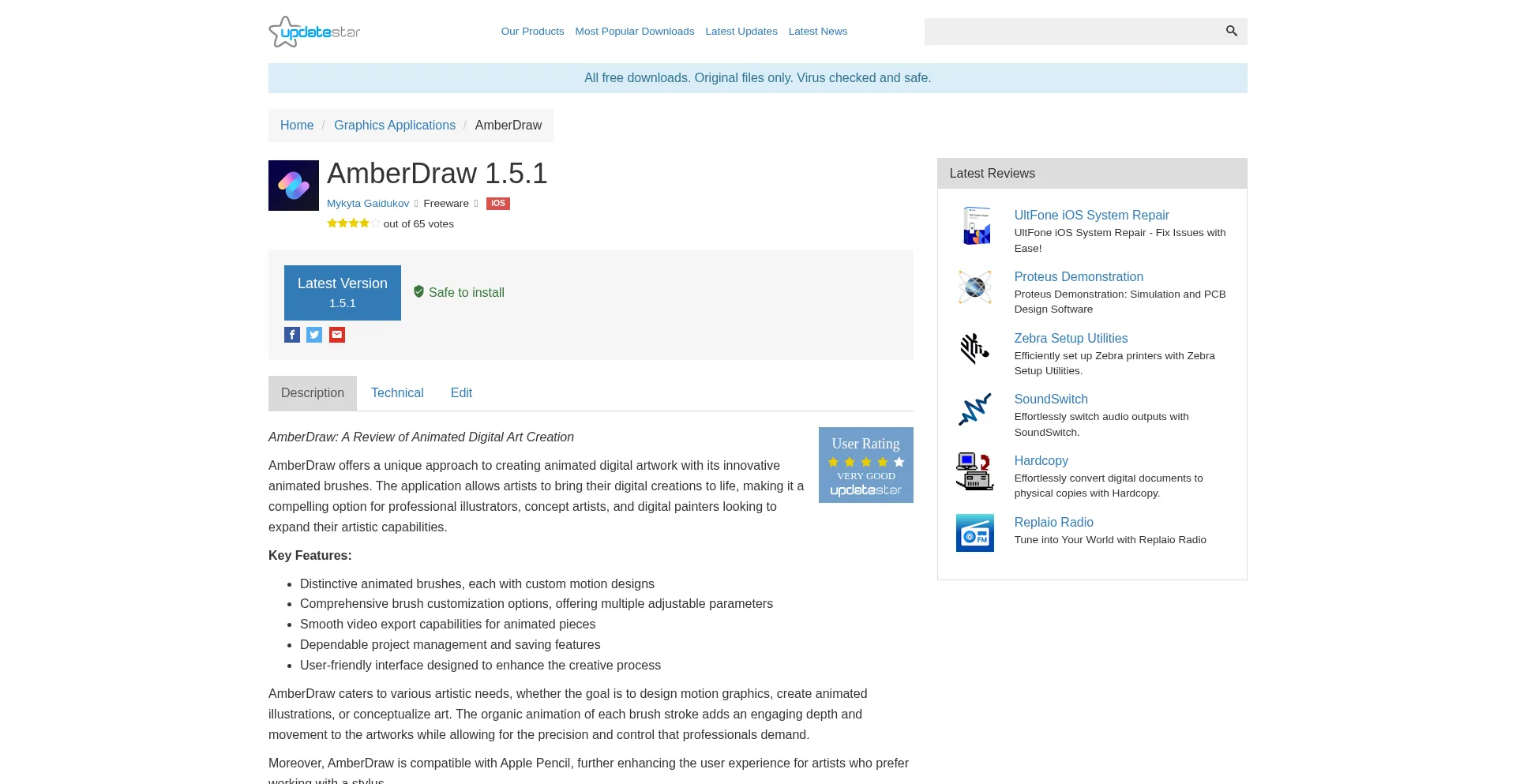 网站上存在社交媒体链接表明 amberdraw.updatestar.com 在社交媒体上维护官方账户,这是可信度和参与度的积极信号。