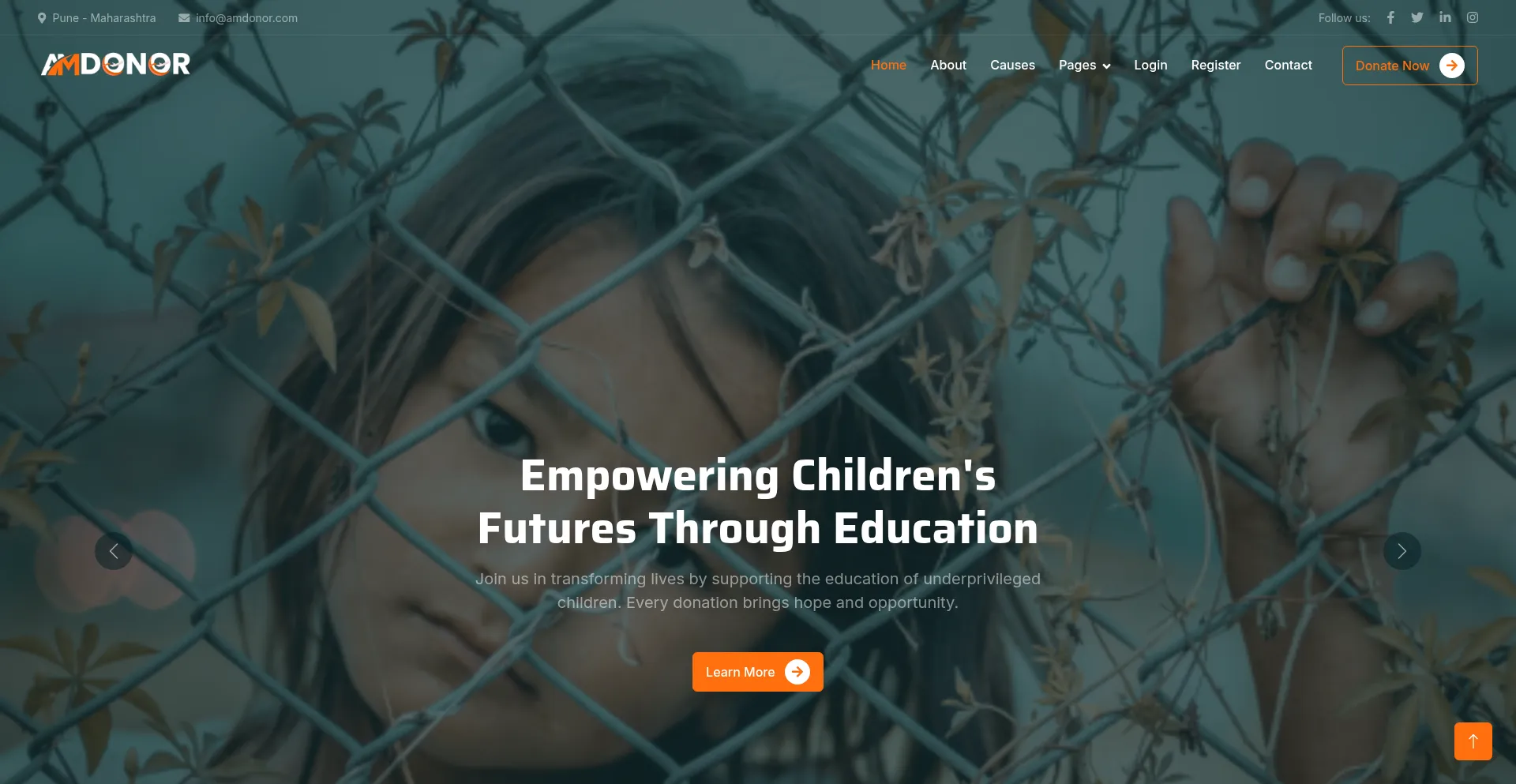 amdonor.com 使用 Bootstrap,这是一个广泛采用的开源响应式网页开发框架。Bootstrap 通过标准化组件和样式实现移动友好界面的高效创建。