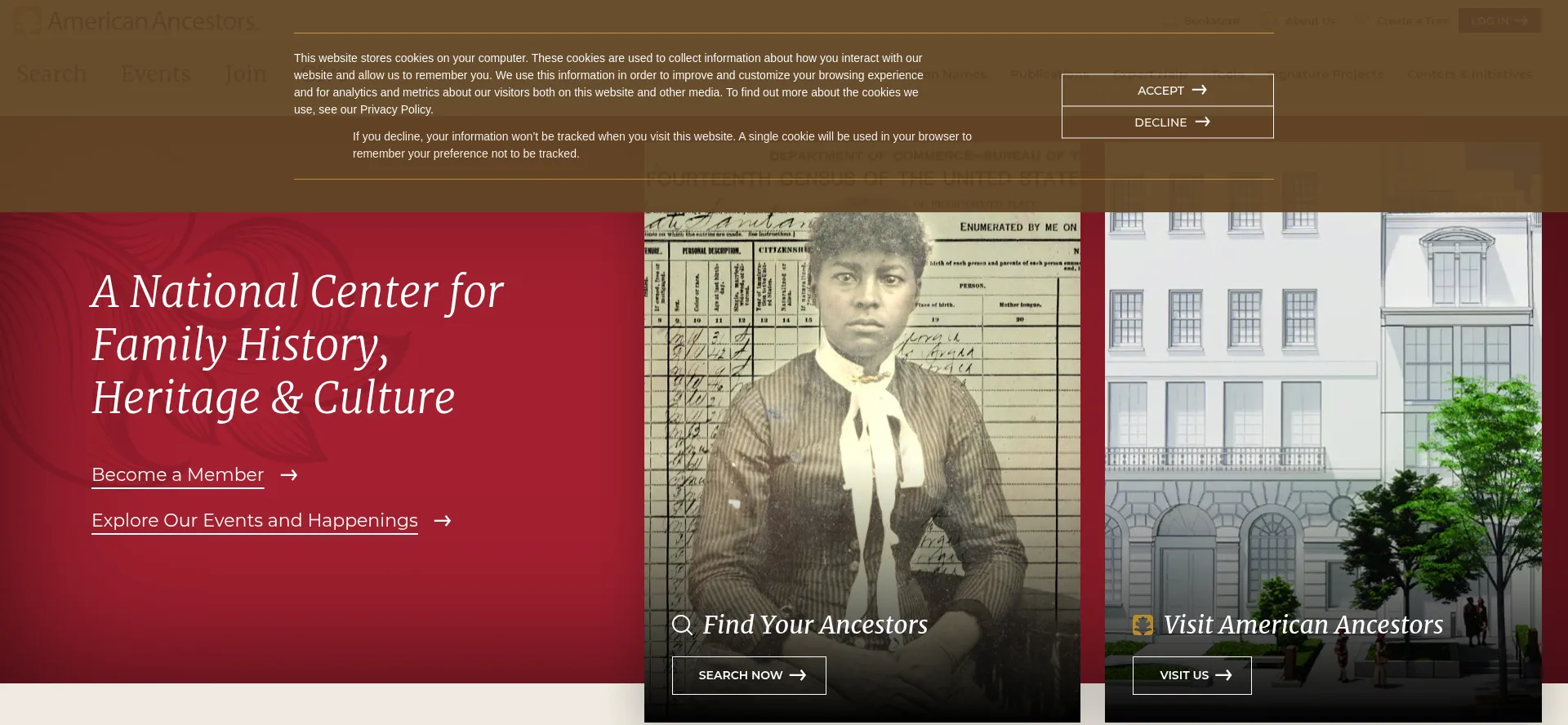 该网站实现数据收集表单,请求个人信息,包括姓名、电子邮件地址、电话号码或其他敏感详细信息。用户应验证 americanancestors.org 的合法性并在提交个人数据前查看隐私政策。