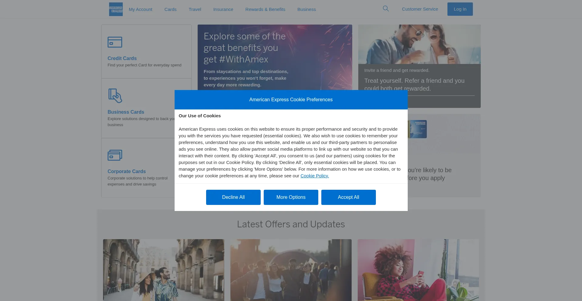 该网站实现符合GDPR或CCPA等隐私法规的cookie同意机制。这表明 americanexpress.co.uk 遵守数据保护标准并为用户提供对个人数据收集实践的控制。