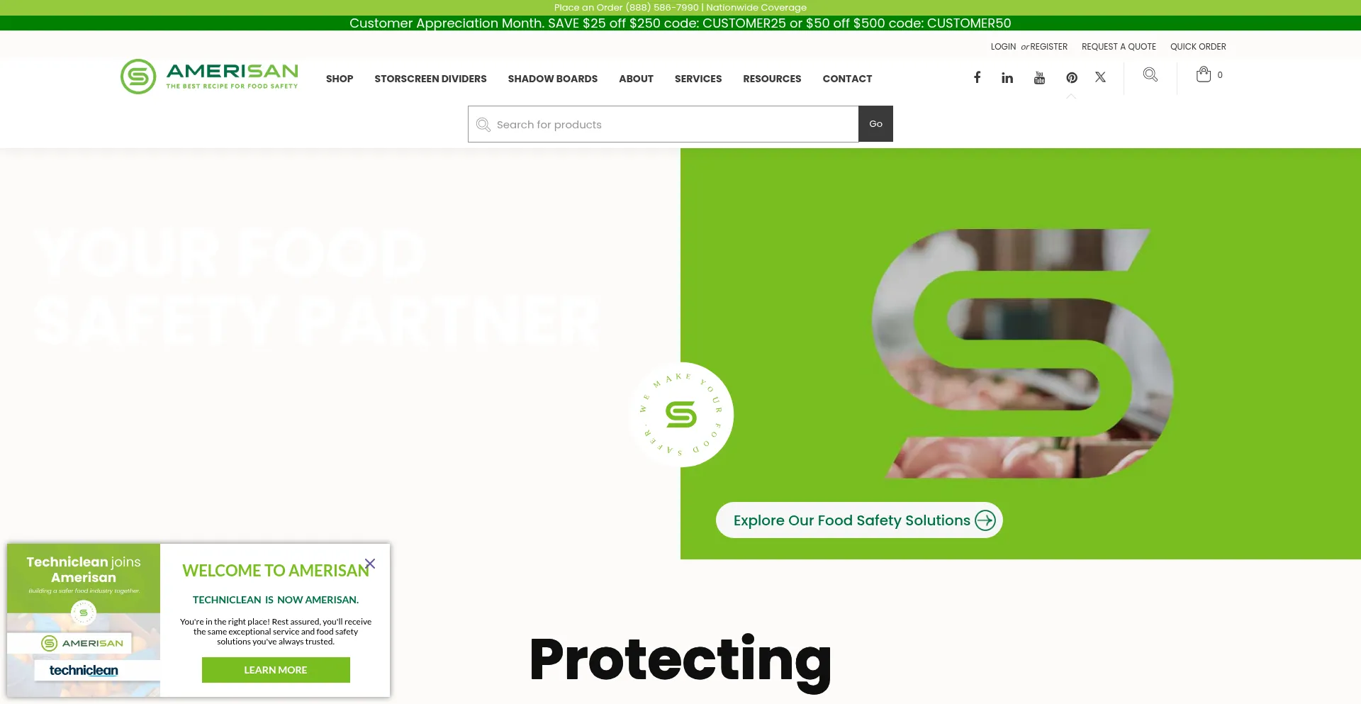 Amerisan leads in food safety supplies, providing Jan-San, PPE, Color Coding, Shadow Boards, and more for the food processing industry.