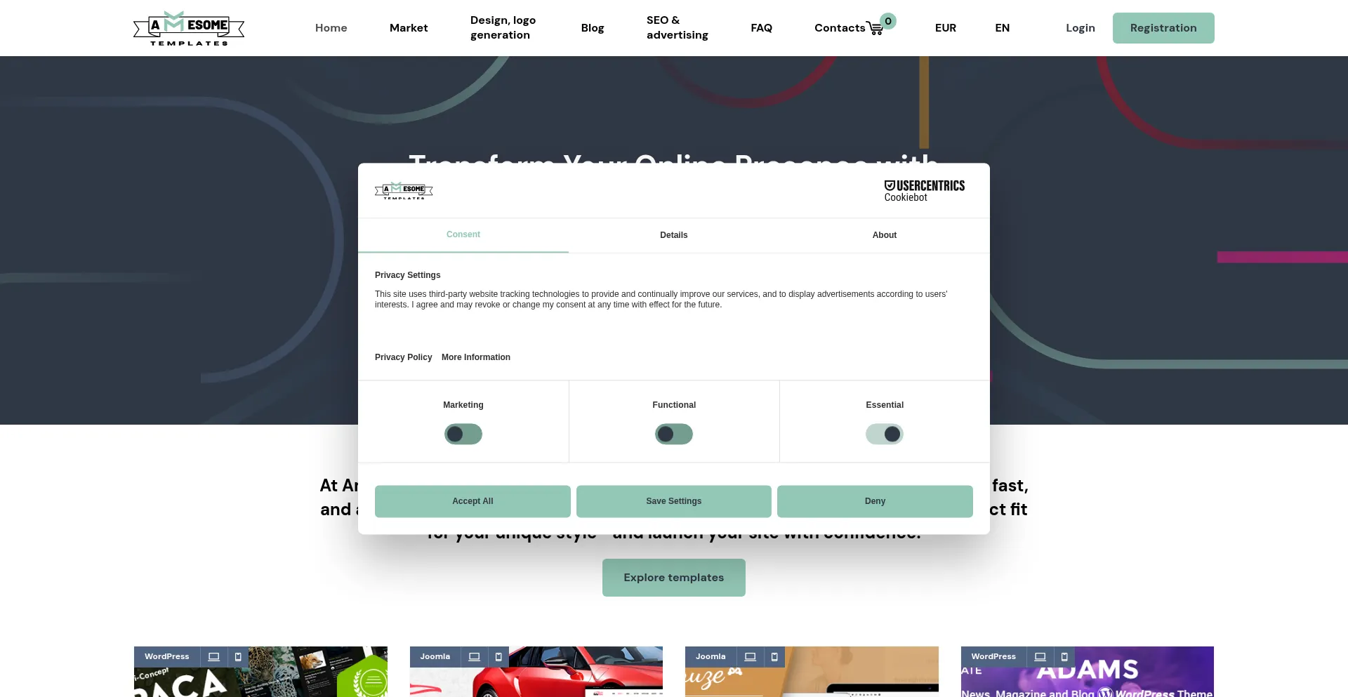 amesome-templates.com 使用 Google Tag Manager 在其网站上添加和更新追踪代码(标签)。