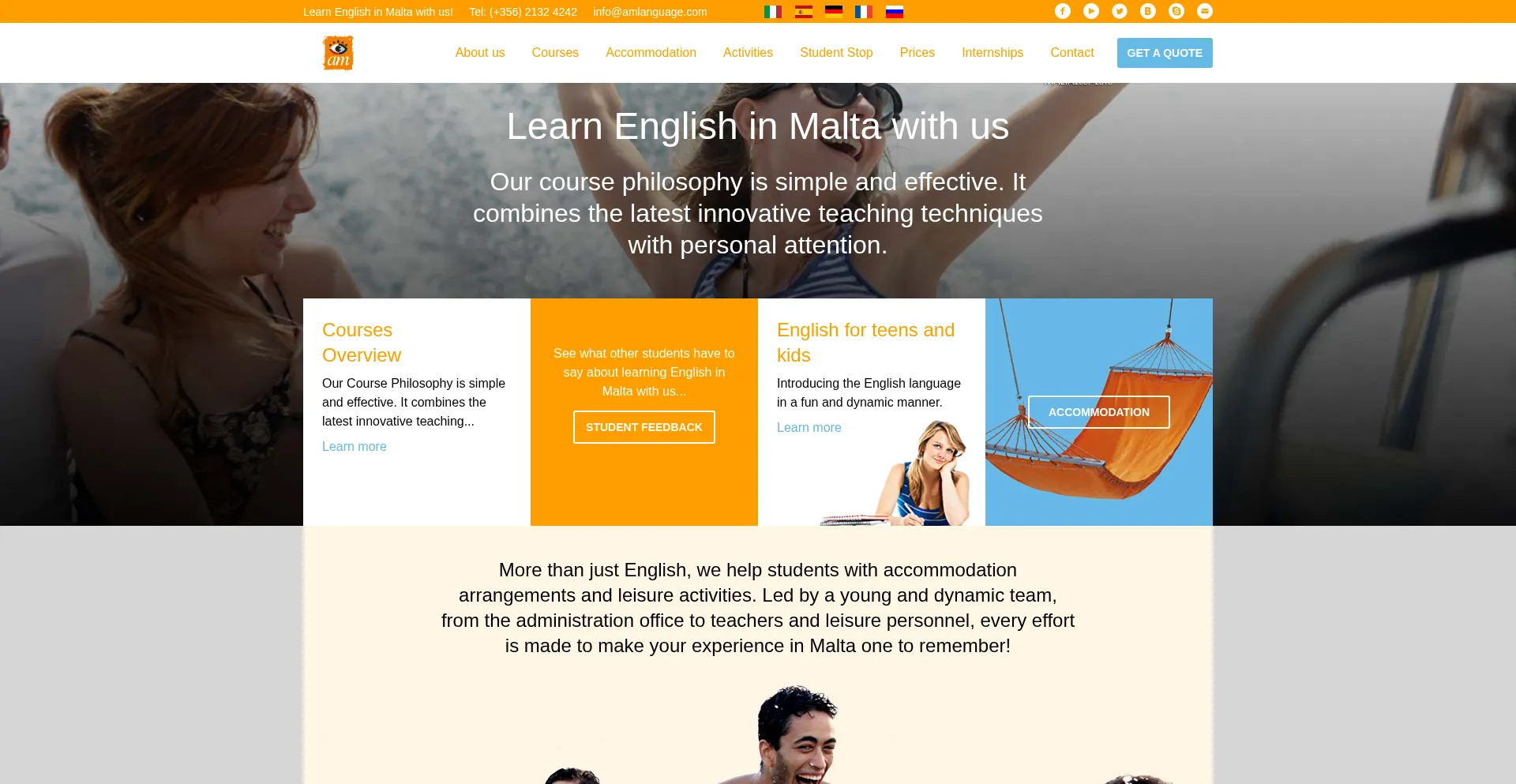 网站上存在社交媒体链接表明 amlanguage.com 在社交媒体上维护官方账户,这是可信度和参与度的积极信号。