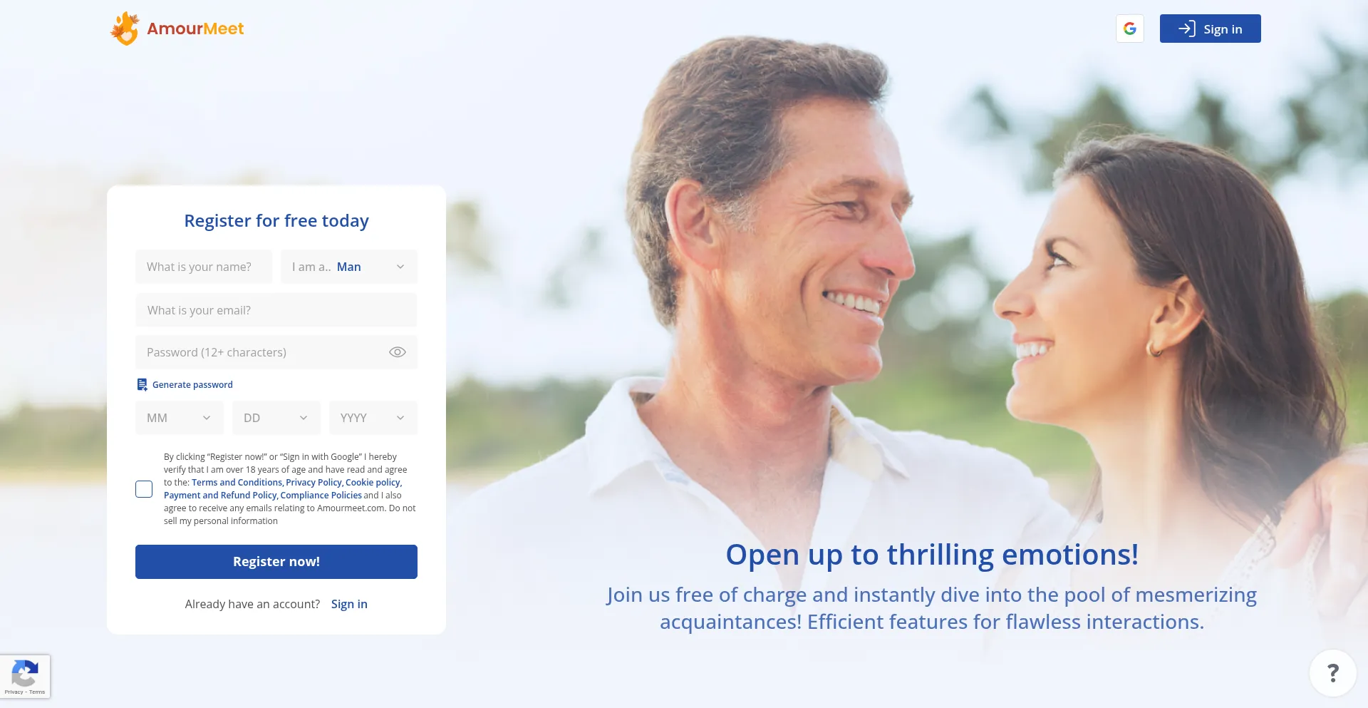 该网站实现数据收集表单,请求个人信息,包括姓名、电子邮件地址、电话号码或其他敏感详细信息。用户应验证 amourmeet.com 的合法性并在提交个人数据前查看隐私政策。