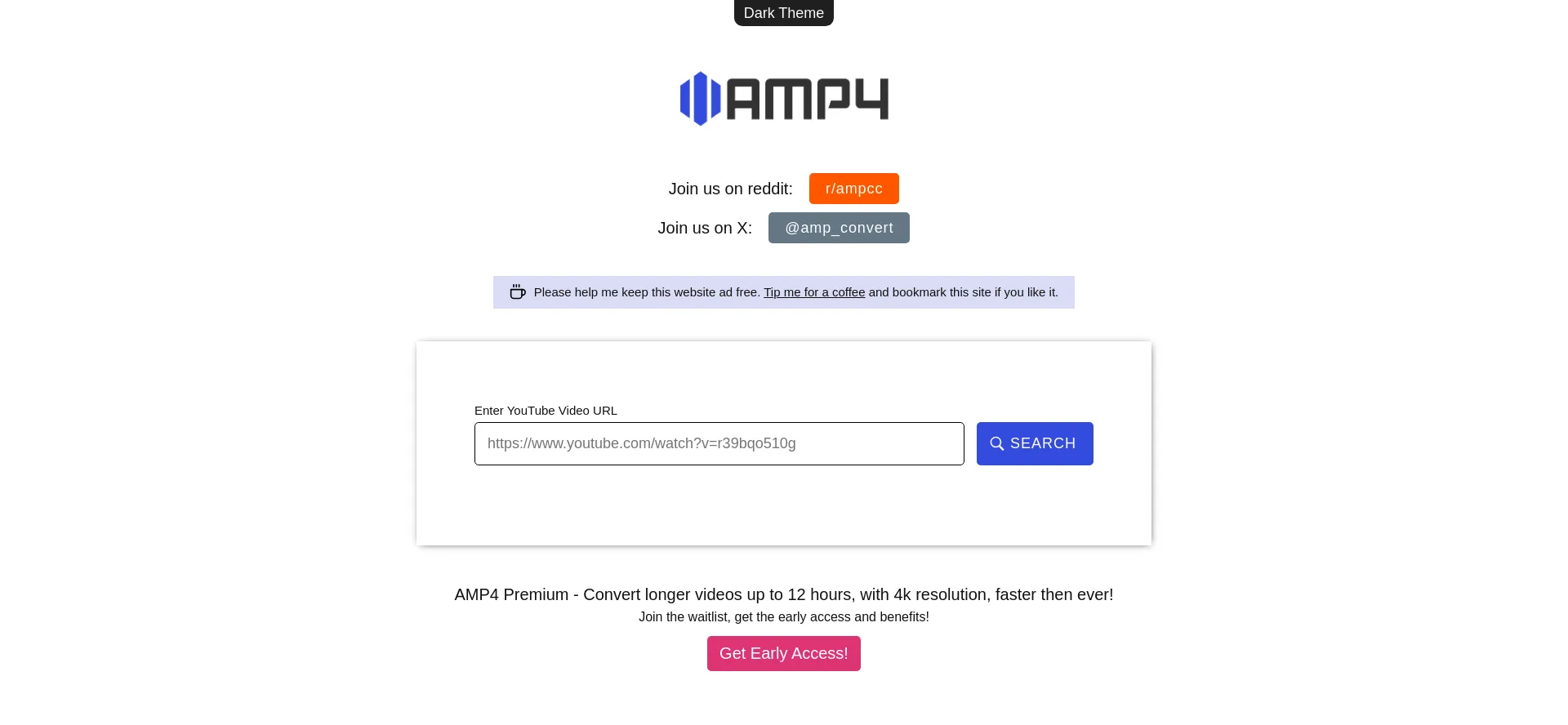 AMP4 YouTube to MP4 Converter. Supports 4K and 2K resolution. Free and safe to use, without ads. No login required.