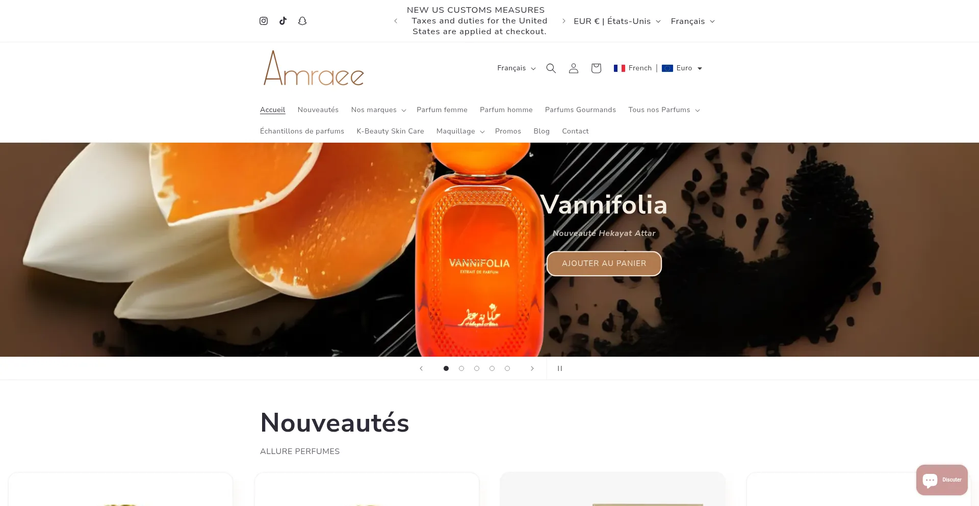 Découvrez Amraee, parfumerie en ligne de parfums orientaux d'exception, importés de Dubaï. Nous vous offrons une sélection de fragrances raffinées, puisées dans la parfume...