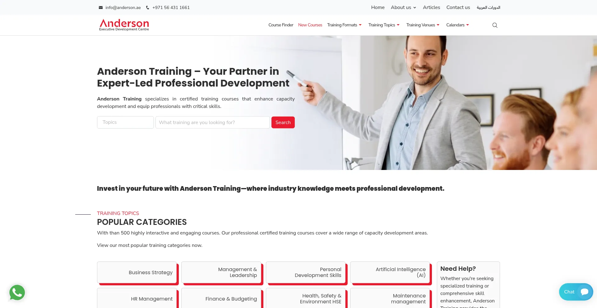 Anderson offers training courses in several areas such as management and leadership, accounting and financial, management, human resources in global cities