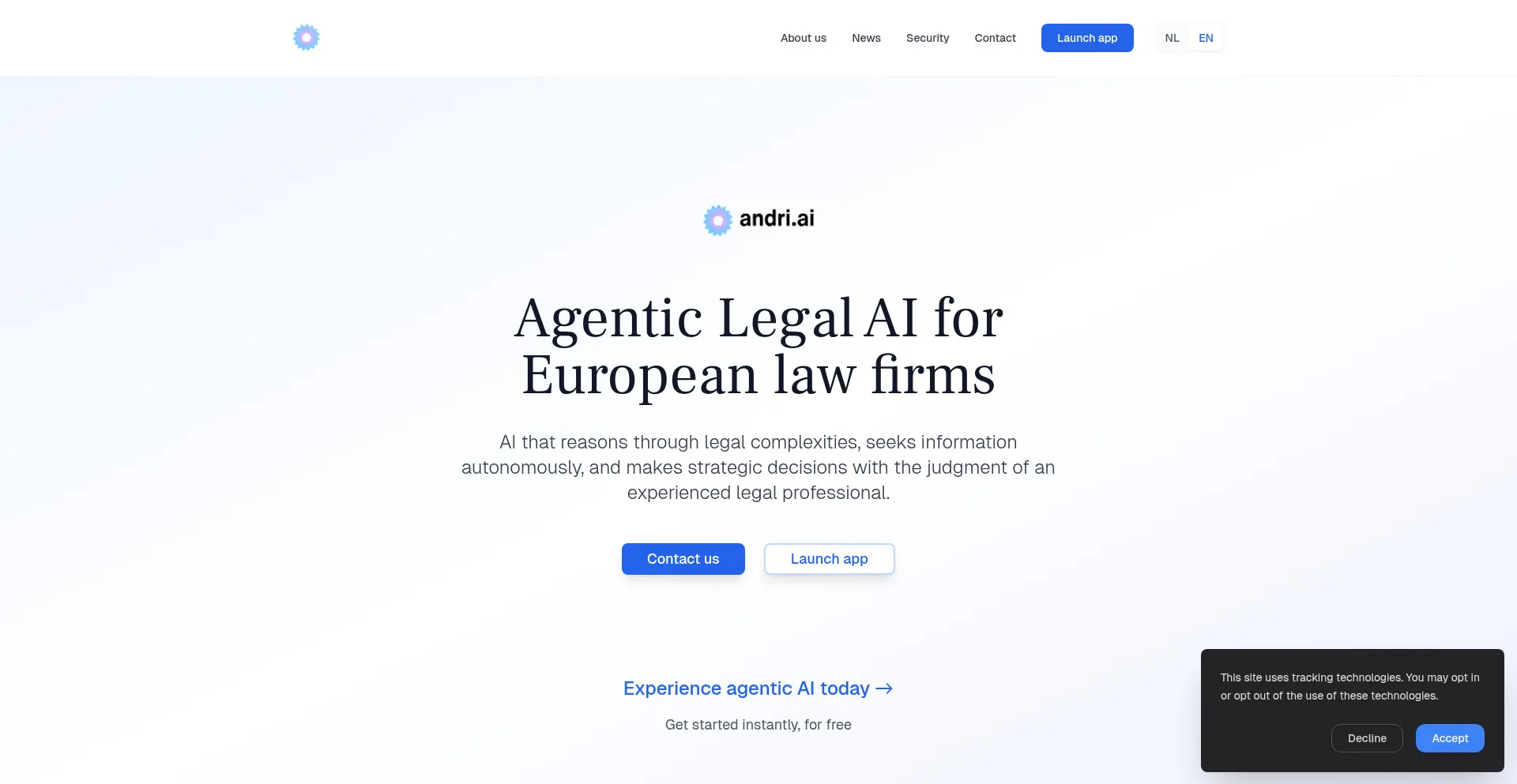 Andri.ai - AI-powered legal assistant for European law firms. Transform your workflow with contract analysis, document review & legal research. ISO 27001 certified, GDPR complia...