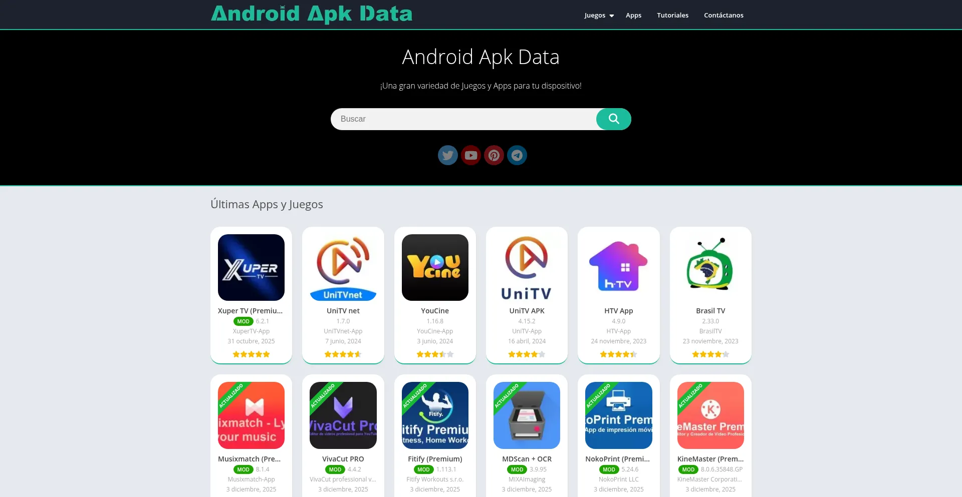 网站上存在社交媒体链接表明 androidapkdata.net 在社交媒体上维护官方账户,这是可信度和参与度的积极信号。