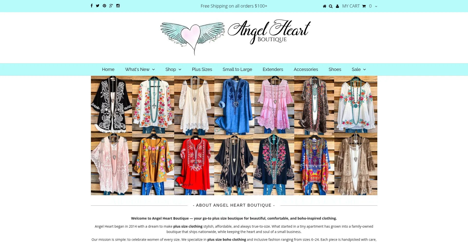 Shop Angel Heart Boutique — award-winning plus size boutique for boho, embroidered & cotton styles. True-to-size fashion, family-owned, fast shipping.