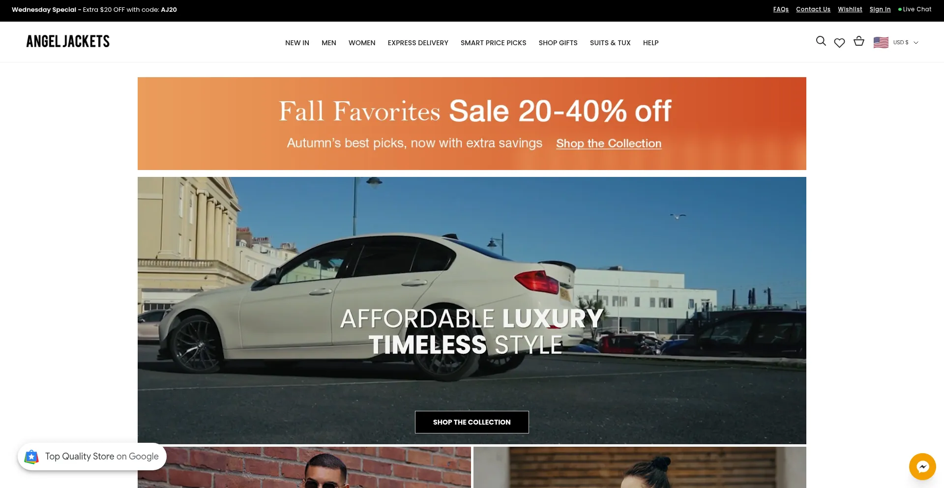 网站上存在社交媒体链接表明 angeljackets.com 在社交媒体上维护官方账户,这是可信度和参与度的积极信号。