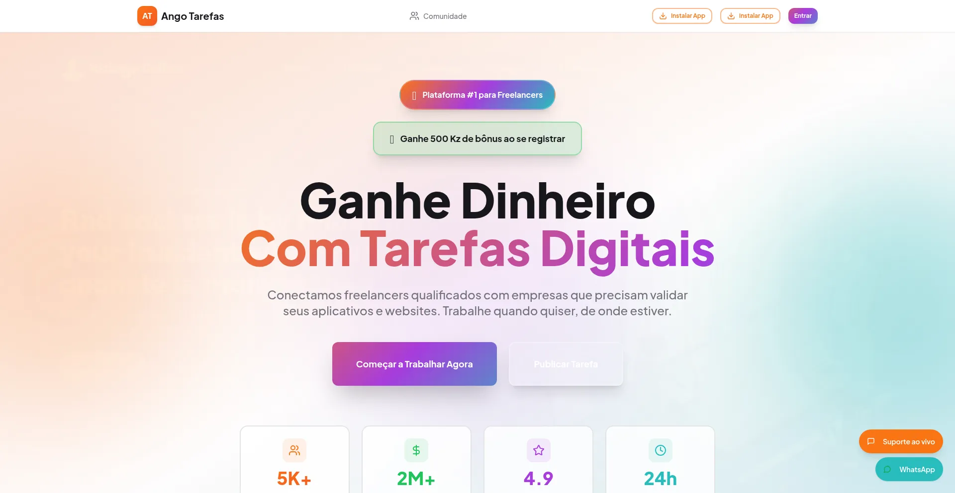 Ango Tarefas conecta contratantes e freelancers para executar tarefas digitais com eficiência. Trabalhe quando quiser, de onde estiver.