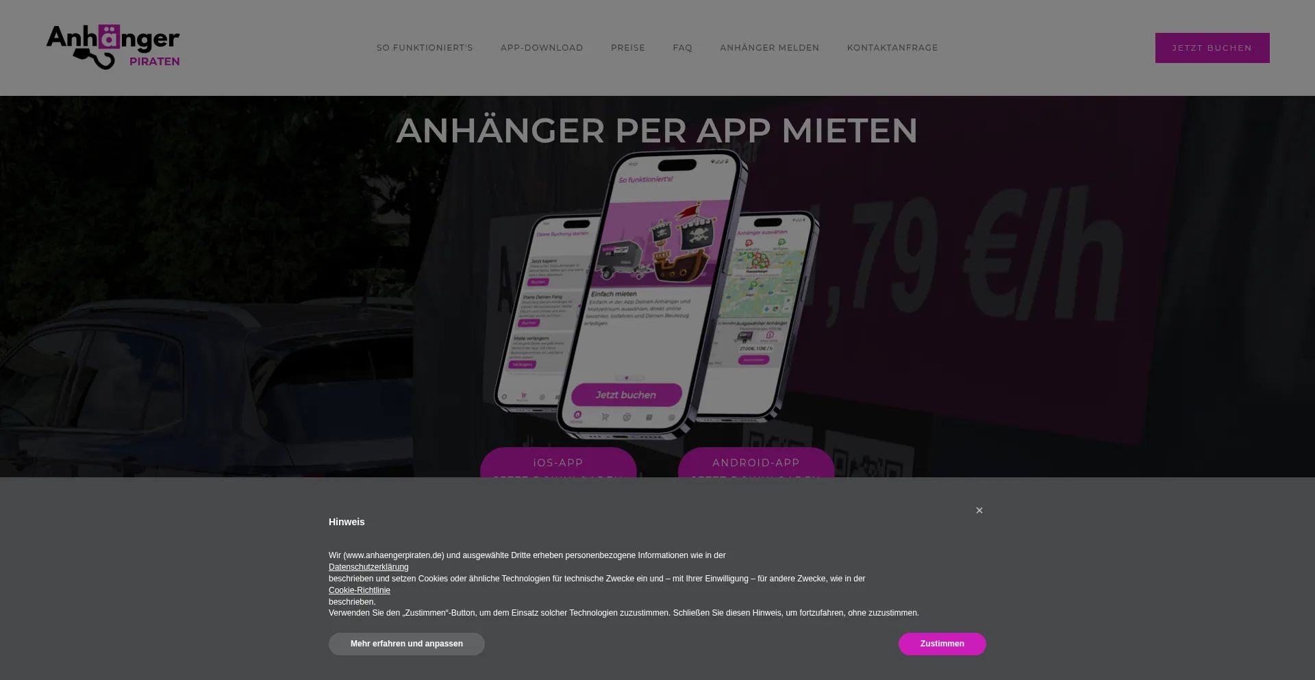 Anhängerpiraten - Anhängervermietung via App